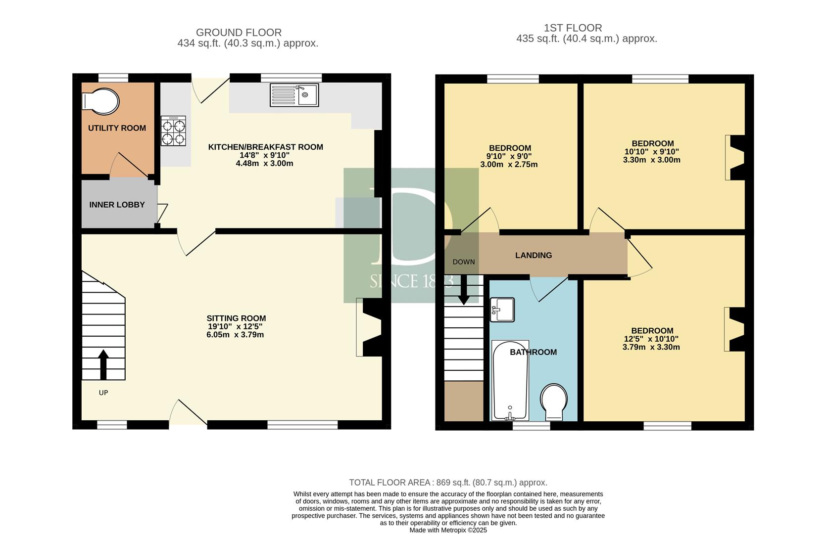 The front door opens to the sitting room with stairs to the first floor and an open fireplace with woodburning stove. The kitchen/dining room is to the rear overlooking the garden. It is fitted with a comprehensive range of units. A folding door leads to a lobby giving access to the separate utility room with a WC. On the first floor are three double bedrooms and a family bathroom with modern three piece sanitaryware.