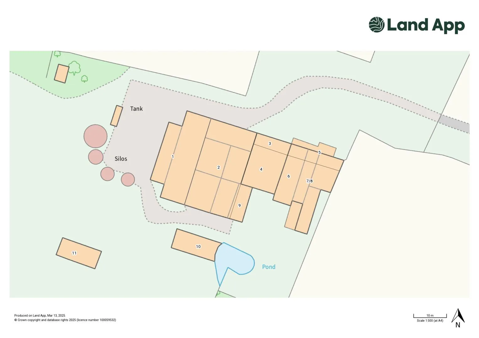 The farmyard and farm buildings are located opposite the farmhouse and comprise a range of traditional and modern farm buildings as detailed below reference to the inset plan.