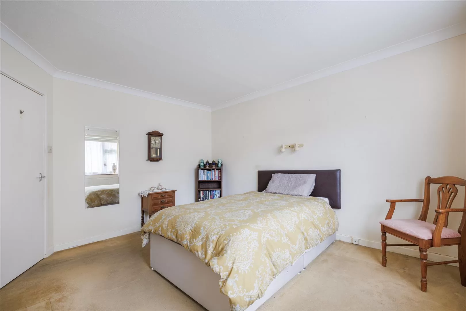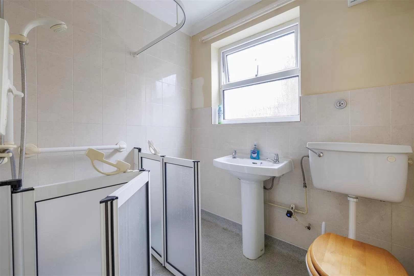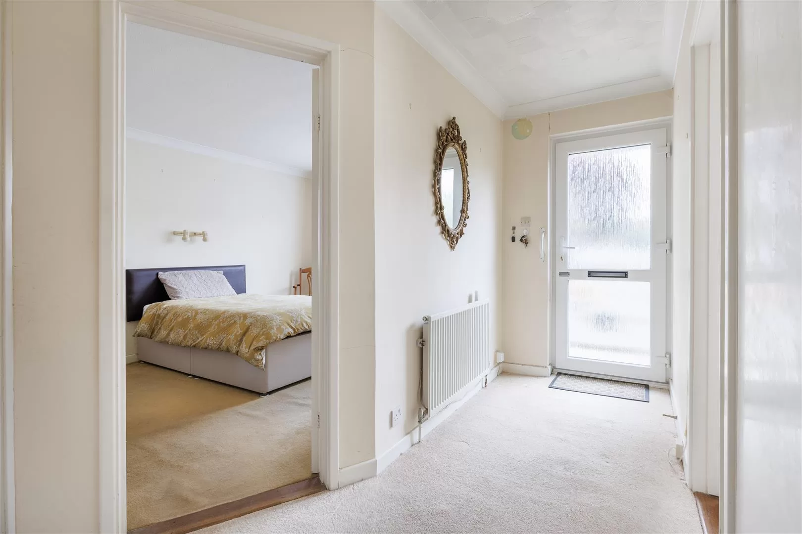 When you step through the front door, you come into the entrance hallway, which connects to both the bedrooms and the main living areas. In addition, the hallway also includes an airing cupboard, providing some handy storage space. On the left side of the hallway is bedroom two, a comfortable double room that looks out to the front of the property. Adjacent to it is bedroom one, a much larger double bedroom, also with views to the front. The bathroom is fitted with a walk-in shower, a basin, and a toilet, and also has an extra storage cupboard.