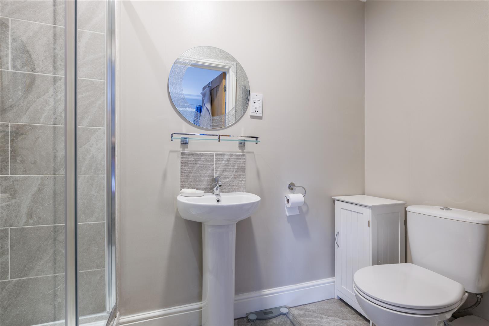 The ground floor further comprises two bedrooms, including a spacious principal bedroom benefitting from fitted storage and an ensuite shower room.