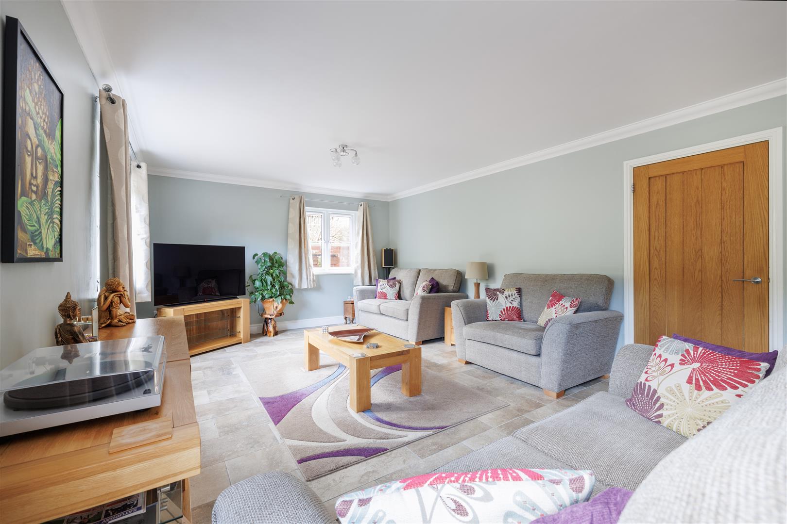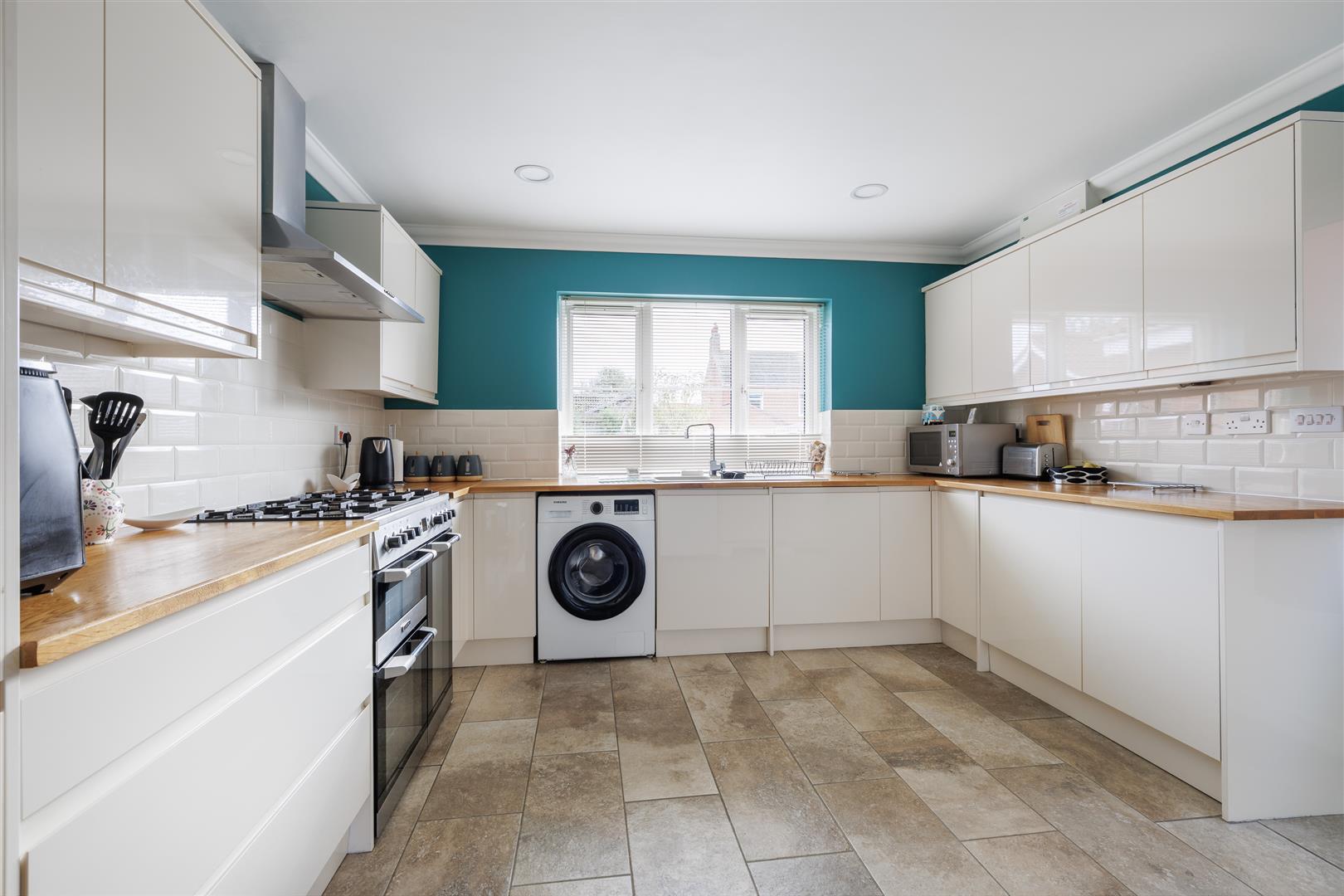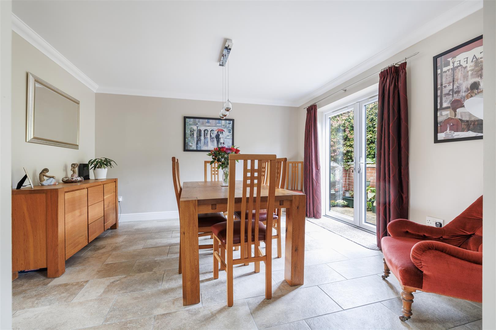 Upon entering, a welcoming entrance hall provides access to the principal rooms and includes a useful cloakroom/WC. The main living accommodation is arranged to the rear of the property, where a generous sitting room enjoys views over the garden and opens through to a formal dining room, creating a superb space for entertaining. The well-appointed kitchen adjoins the dining area, offering a practical and sociable layout ideal for modern living.