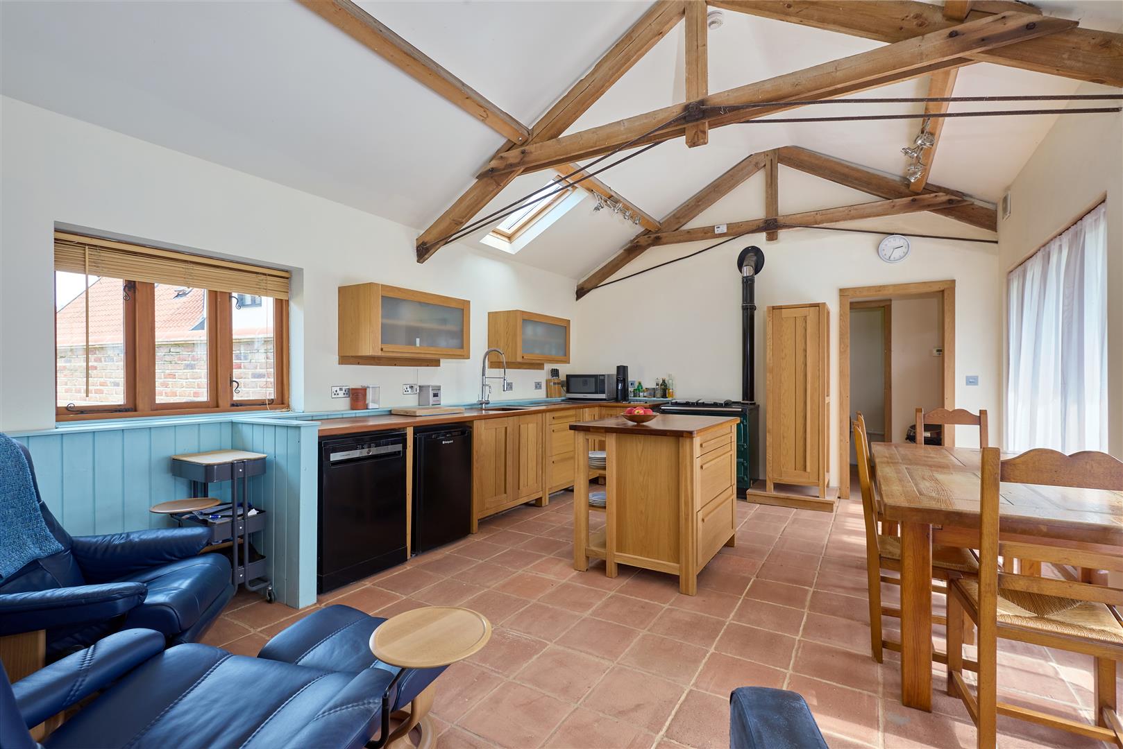 Originally recorded on a map in the early 17th Century, The Stables was part of an historically important collection of barns converted into dwellings in the early 2000s. This charming Grade ll listed home is rich in character, featuring original oak beams and distinctive hexafoil patterns adorning an upstairs wall. Upon entering, a generous entrance hall welcomes you, with stairs ascending to the first floor and an open flow into the substantial kitchen and dining room. This area is well-appointed with ample units, a central island, and a Rayburn for heating and cooking. Leading off the kitchen/dining room is a rear porch with a stable door to the exterior, a convenient walk-in storage cupboard and access to the utility room, which includes a butler sink. The property provides three ground floor bedrooms, two with en-suite facilities, and a separate bathroom. The first floor unveils a striking living room with oak flooring a wealth of original oak beams, original mullioned windows and a wood-burning stove. Enhancing modern living are the benefits of underfloor heating and an in-built vacuum system.