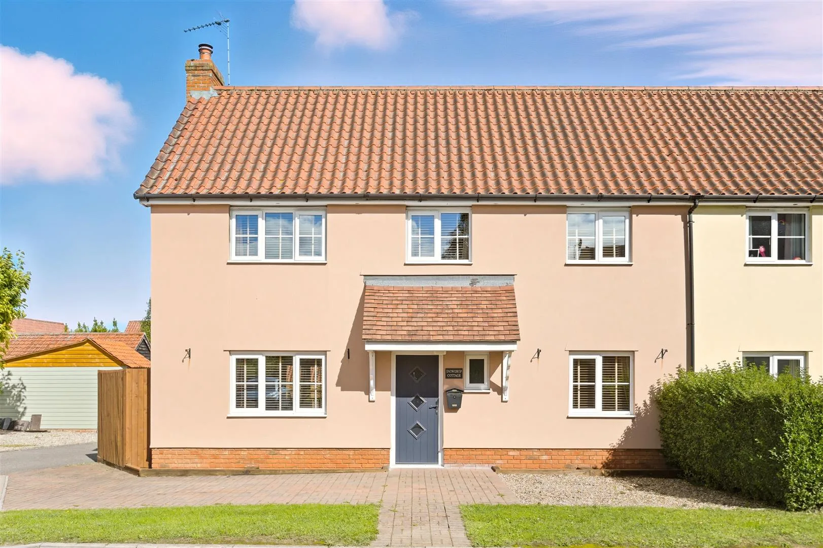 A beautifully presented four-bedroom semi-detached home, ideally situated in the sought-after village of Kenton. This family-size property offers spacious, light-filled, and thoughtfully arranged accommodation, maintained to a high standard throughout. As you enter through the front door, you are greeted by a spacious entrance hall. From here, there is access to a cloakroom fitted with a dual flush W/C, wash hand basin, and front aspect window. The dining room enjoys a front aspect window and features attractive engineered wooden flooring. The kitchen offers a generous range of fitted wall and base units with complementary work surfaces, incorporating a 1½ bowl sink and drainer. There is space for a cooker and dishwasher, along with a rear aspect window. A door leads through to the utility room, which is fitted with further wall and base units, work surfaces with inset sink, a water softener, and plumbing for a washing machine. From here, a door opens directly to the rear garden.