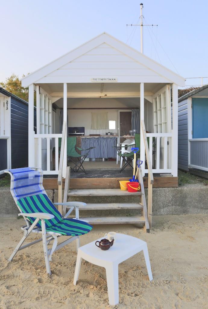 This beach hut was originally owned by the Swan Hotel and was used as a gentleman's dressing hut, the original sign remains intact and boasts the hut's history.