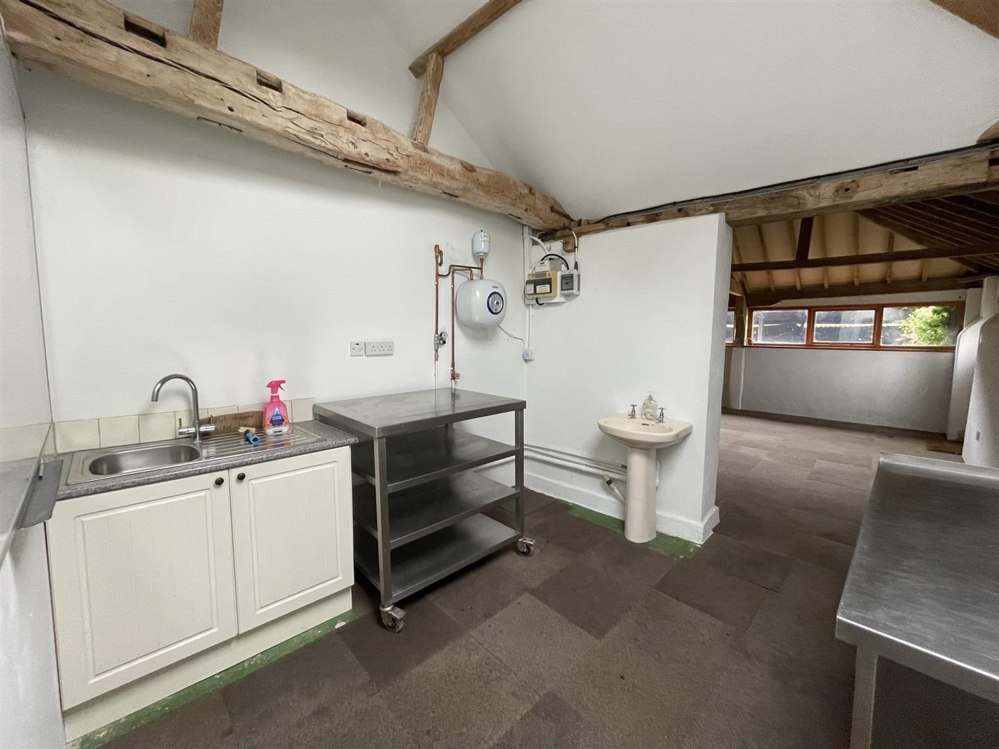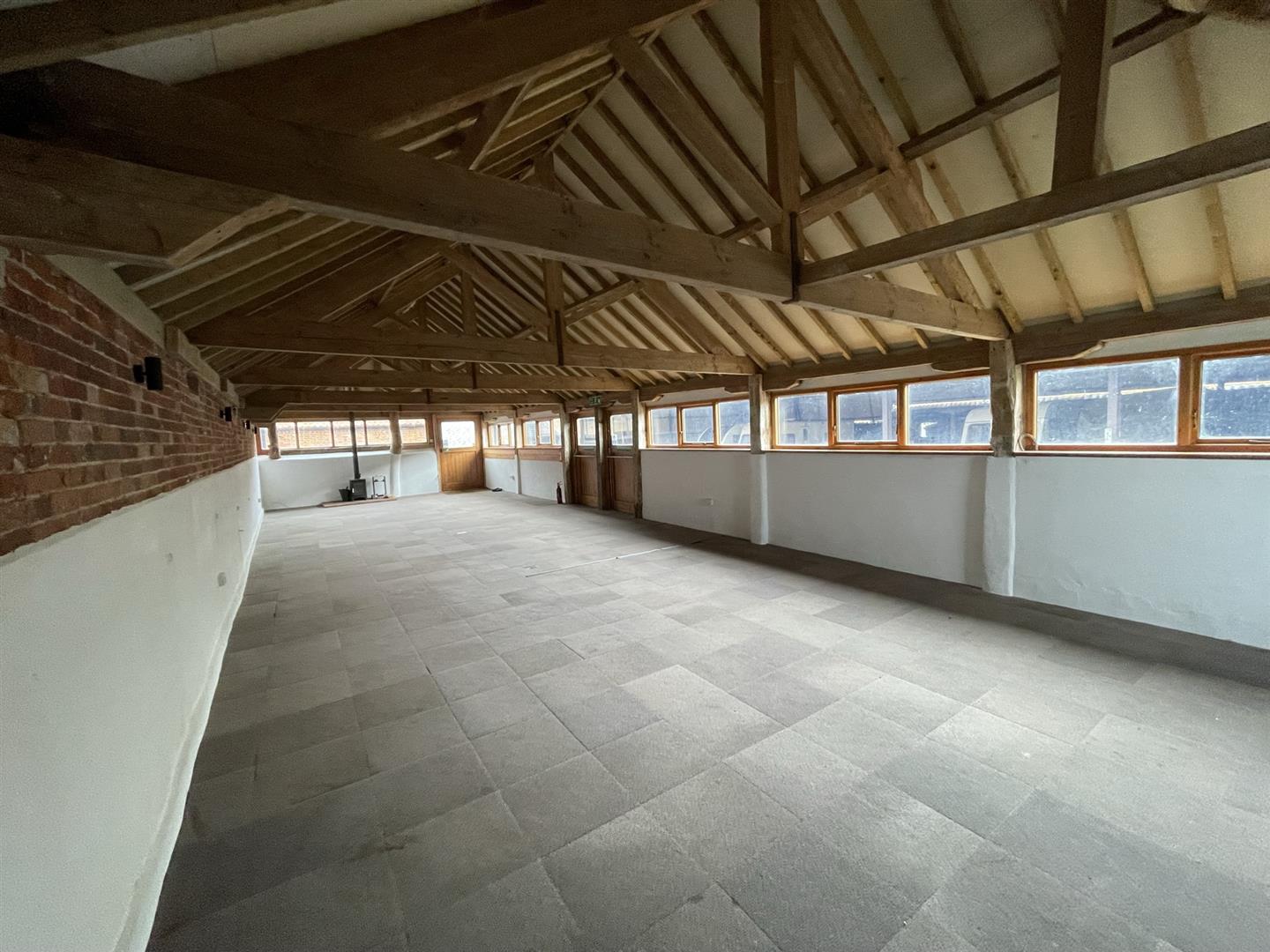 The accommodation is light with a number of windows to the eastern aspect with two entry doors and two further fire escapes. The building comprises a number of period features including exposed beams and a wood burning stove.