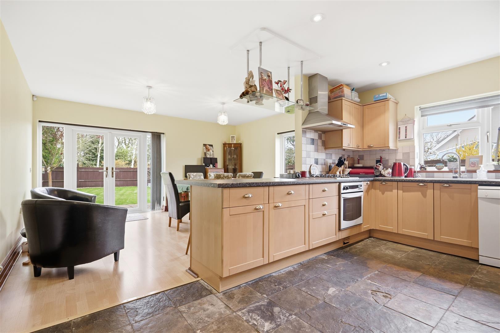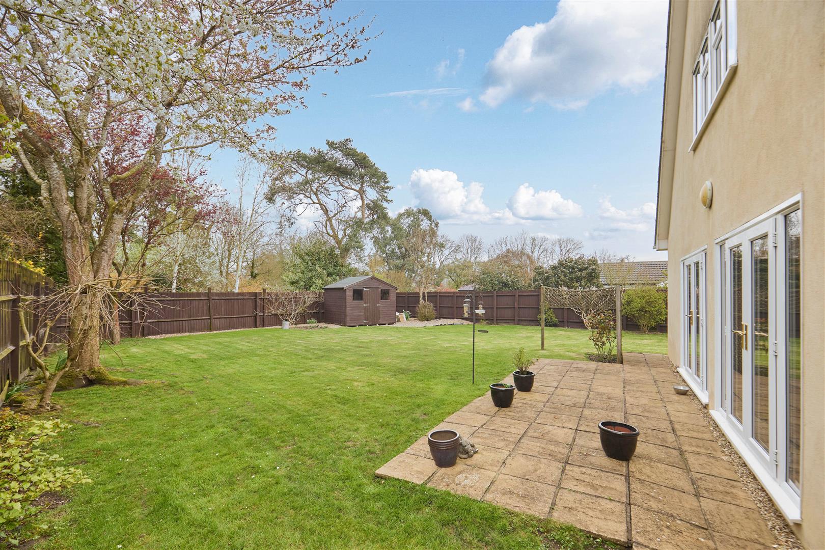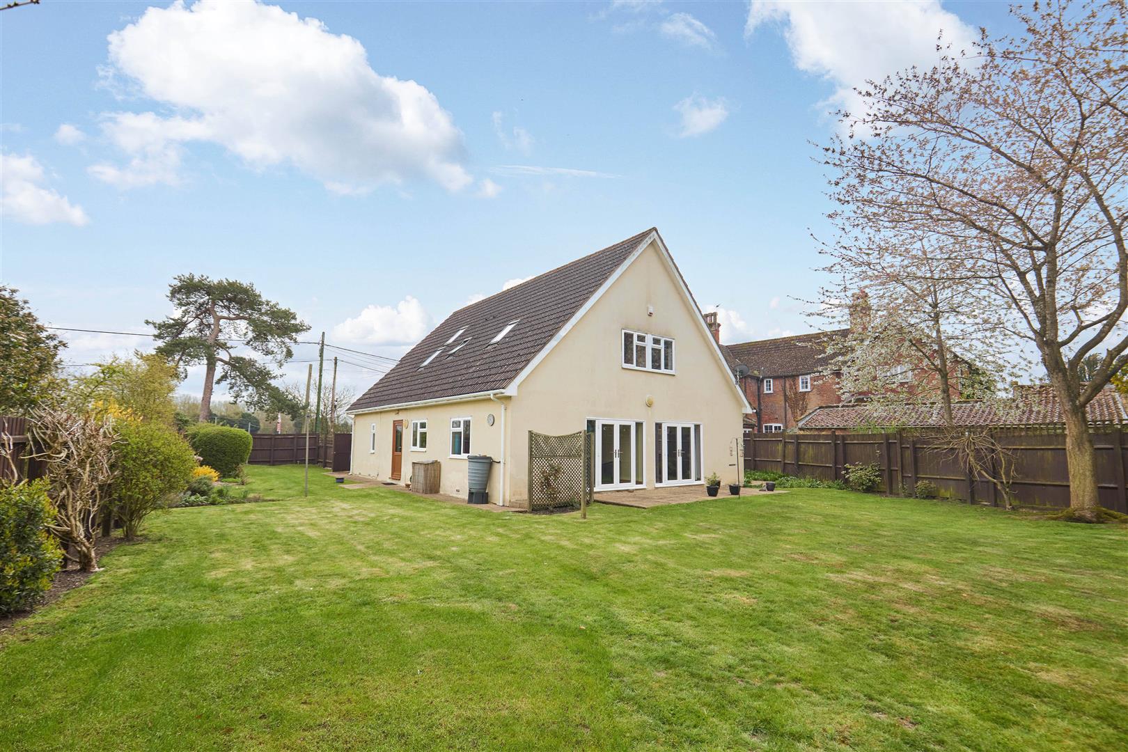 The front door opens to a very spacious entrance hall with integral door to the garage and stairs to the first floor. There is a study to the front that could be used as a 5th bedroom and a large cloakroom. it is considered this could be adapted to create a shower room if required. There is a large double aspect sitting room to the rear with French doors to the garden. The kitchen/dining room is open plan with the dining room also opening to the garden. The kitchen is comprehensively fitted with a range of wall and base units and integrated appliances. There is also a useful utility room. On the first floor a spacious vaulted landing leads to all four double bedrooms. All bedrooms are vaulted with the principal being at the rear. It has a large bank of wardrobes and cupboards and an ensuite shower room. There is also a family bathroom with corner bath.
