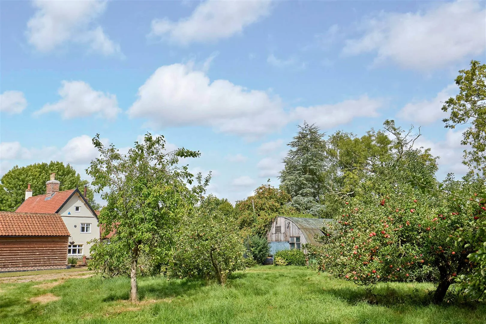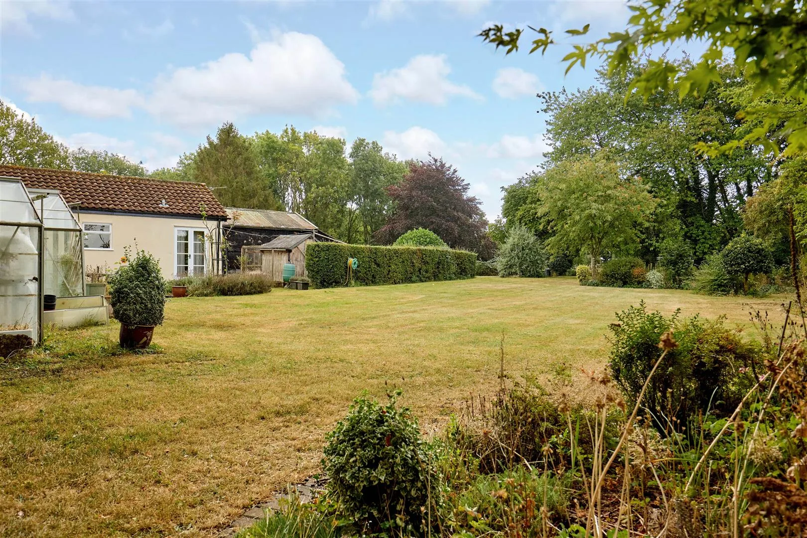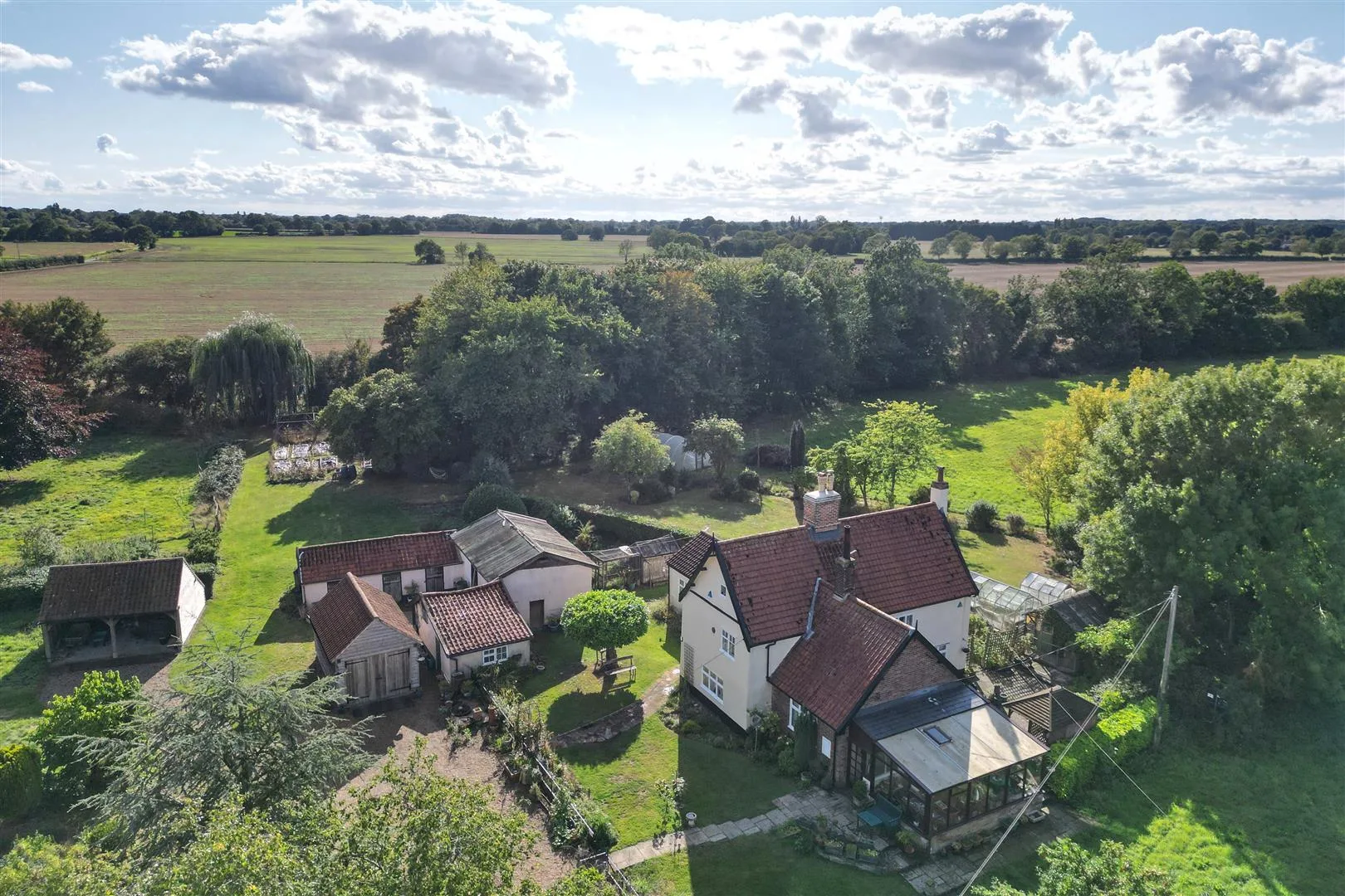 Externally there is a superb range of outbuildings including barns, stables and large former Nissan huts. The outbuildings offer huge potential subject to the necessary planning consents. For those seeking the 'good life' the land would work perfectly. There is a large area of lawn with established borders. There is an excellent vegetable garden ready to be brought back into productivity next spring, plus a paddock and small area of woodland. In addition, there are two fields, one with road access.