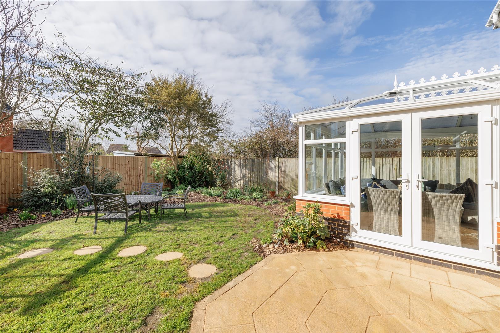 Gated access leads to the rear garden, which is mainly laid to lawn and features a paved patio area ideal for outdoor seating and entertaining. The garden is further enhanced by a variety of plant, tree and shrub borders, creating a pleasant and private outdoor space.