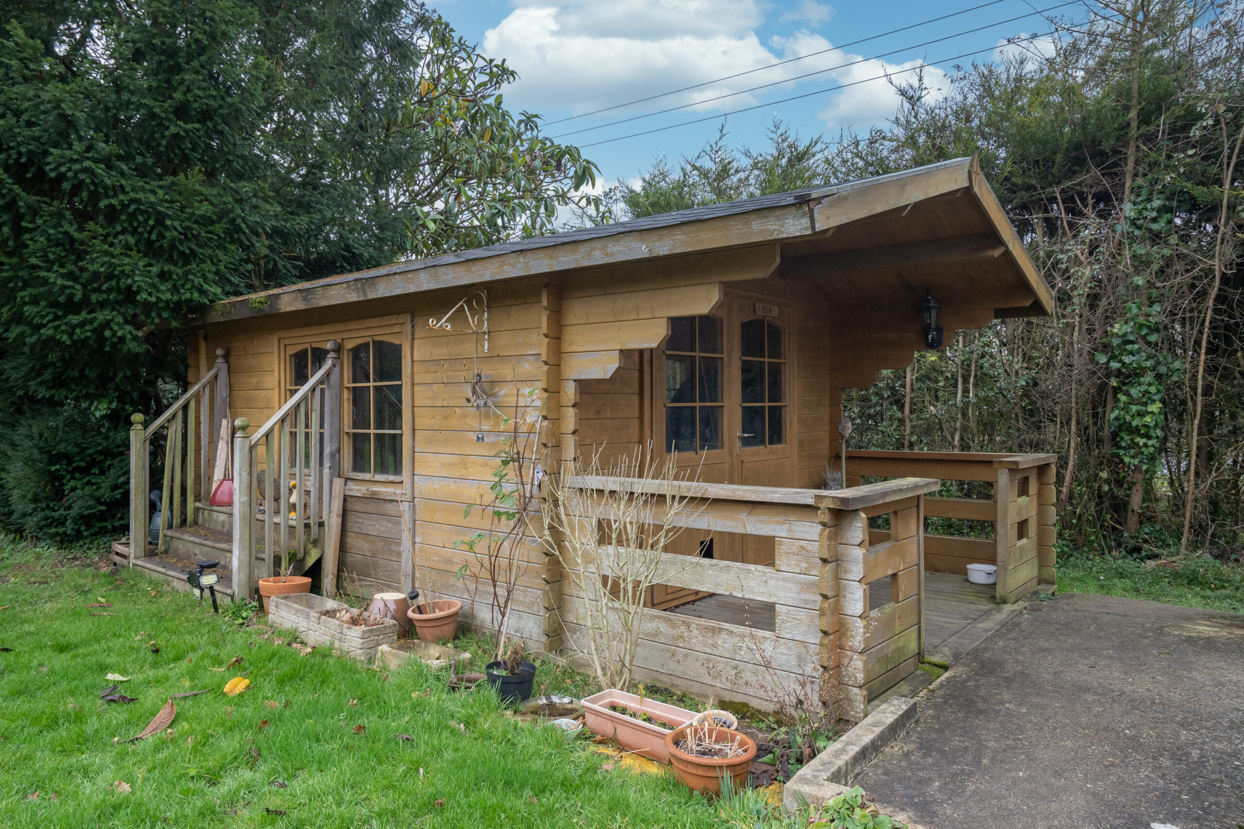 Outside, the property sits within an acre plot (stm) and the garden wraps around the bungalow. There is plenty of off road parking on the shingled driveway for numerous vehicles and access to the timber detached double garage/workshop. There is also a summer house, with power, well matured orchard, large shed, greenhouse, dog run and beautiful pond.