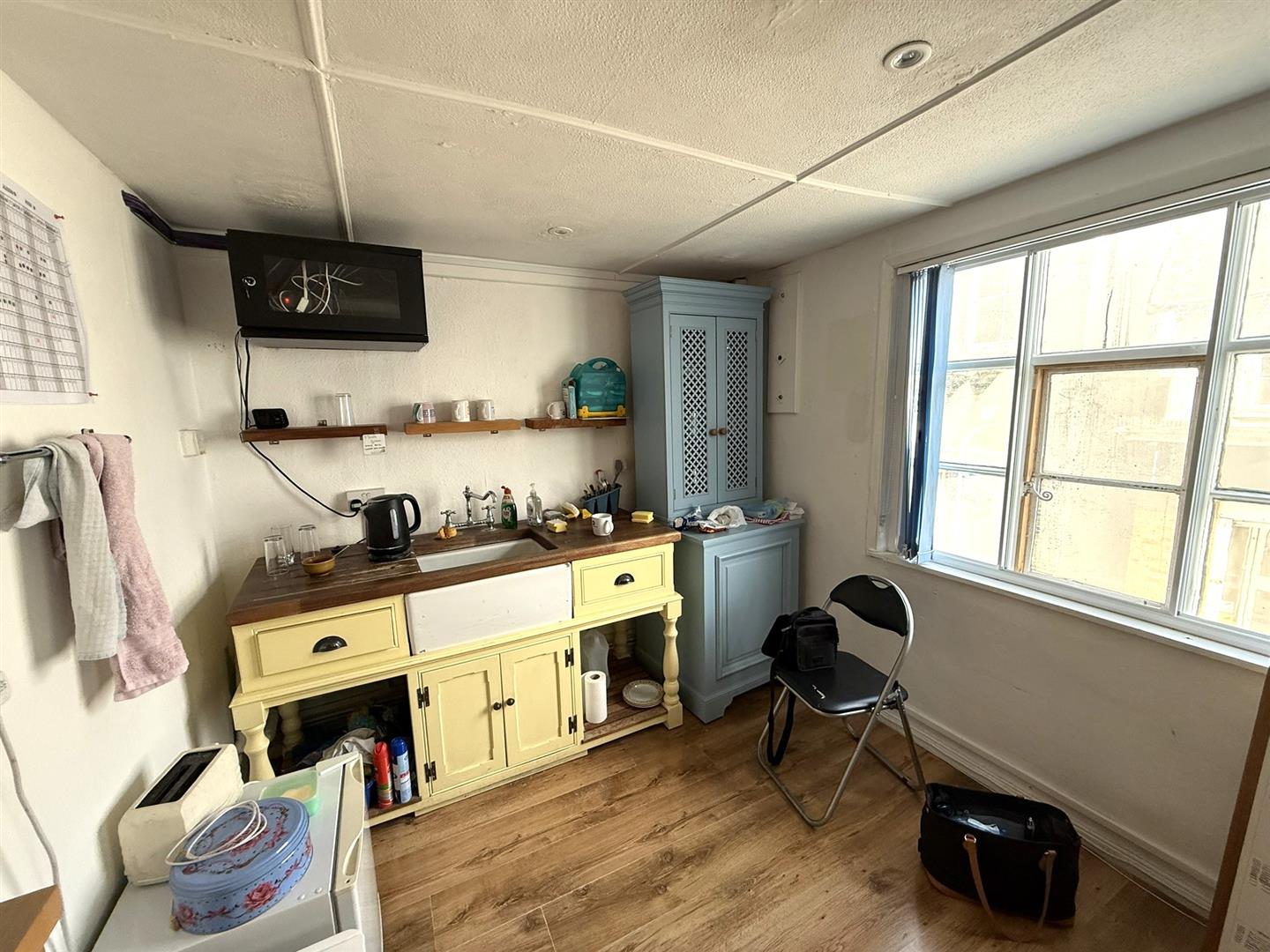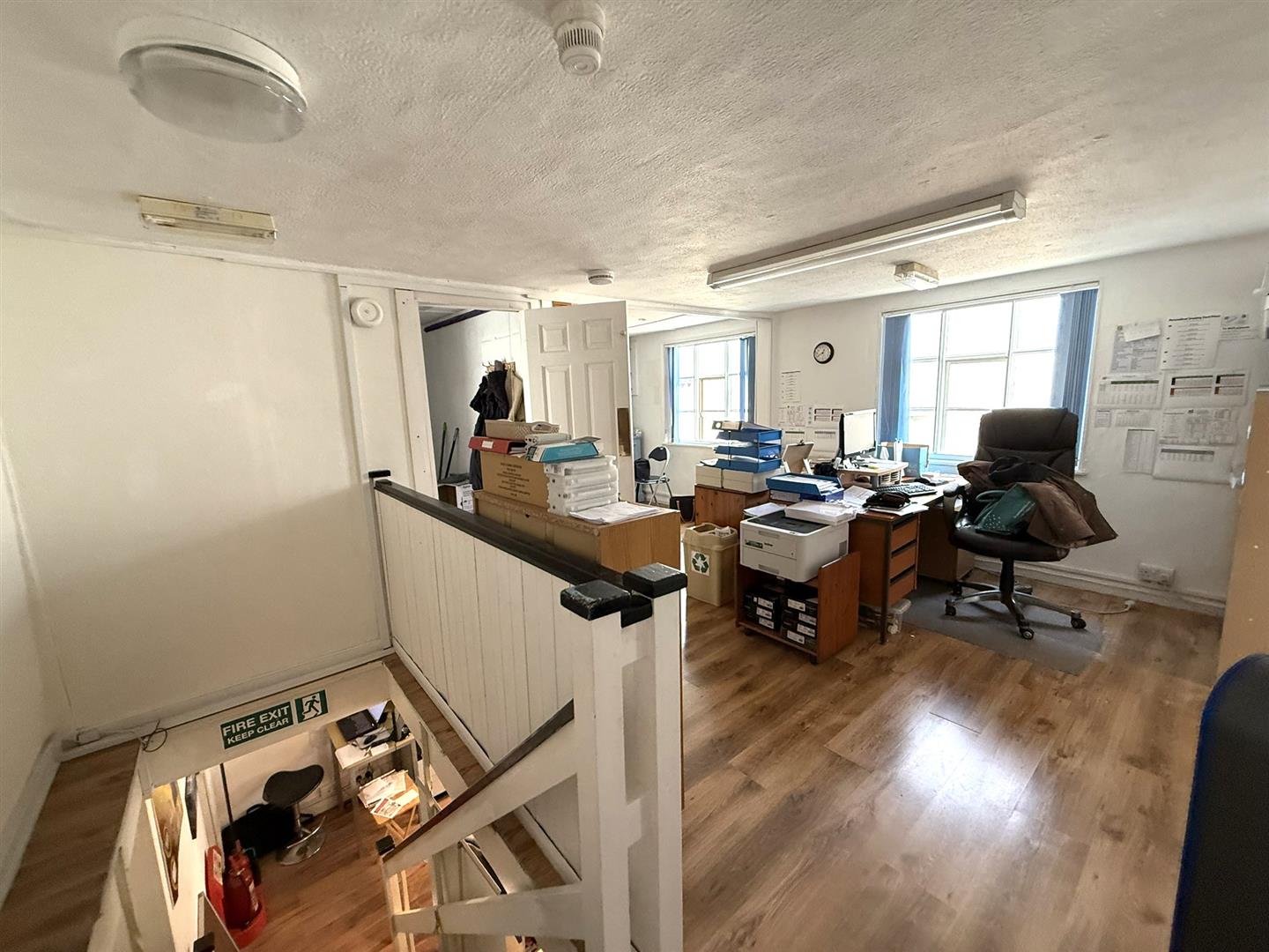 On the first floor are two large office spaces, two stores, a small teapoint area and wc. The rooms are light and airy, with windows looking out onto Mere Street and towards the Meres Mouth. The first floor accommodation extends over the neighbouring shop, offering substantial office space larger than the ground floor accommodation.