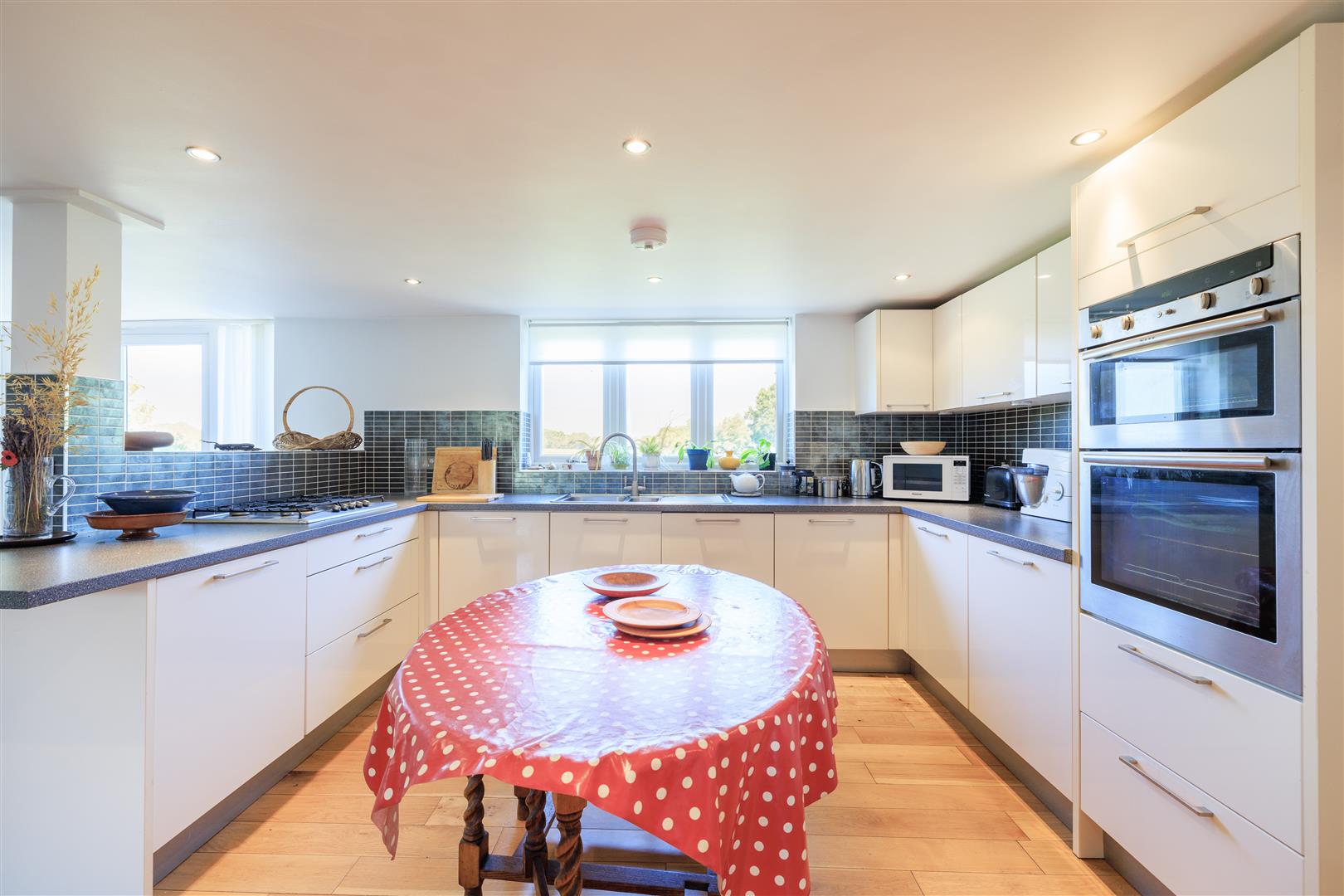 The sitting room is a cosy and inviting space with views over the front garden and seating area. A wood burner serves as the focal point of the room, creating a warm and homely atmosphere. There's also a useful understairs storage cupboard, complete with lighting. The sitting room flows seamlessly into the kitchen/day room. The kitchen is generously sized is ideal for open-plan living, making it perfect for entertaining family and friends. Double doors open out onto the rear garden and seating area, offering beautiful countryside views. The kitchen is well-appointed with ample wall and base units, a built-in oven and a dishwasher. Just off the kitchen is the utility room, which includes additional wall and base units, an integrated sink, and a side door leading outside. From here, you can also access the downstairs bathroom, featuring a shower, toilet, and basin. The dining room is another well-proportioned reception space, with a working wood burner and lovely views over the front garden and mature shrubs.