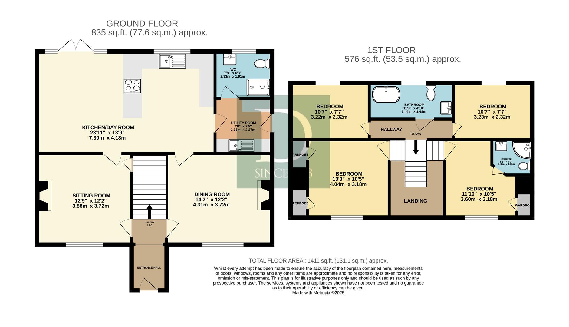 Heading upstairs, the landing is filled with natural light and offers charming views of the front of the property. Bedroom one is a generously sized double room with fitted wardrobes and an en-suite comprising a shower, toilet, and basin. This room also enjoys views over the front aspect. Bedroom two is another spacious double room with built-in wardrobes and front-facing views. Both of these bedrooms feature original fireplaces, adding character and charm. Bedrooms three and four are well-sized single rooms, both offering stunning views over open fields to the rear. The family bathroom is well-equipped with a bath, toilet, and basin.
