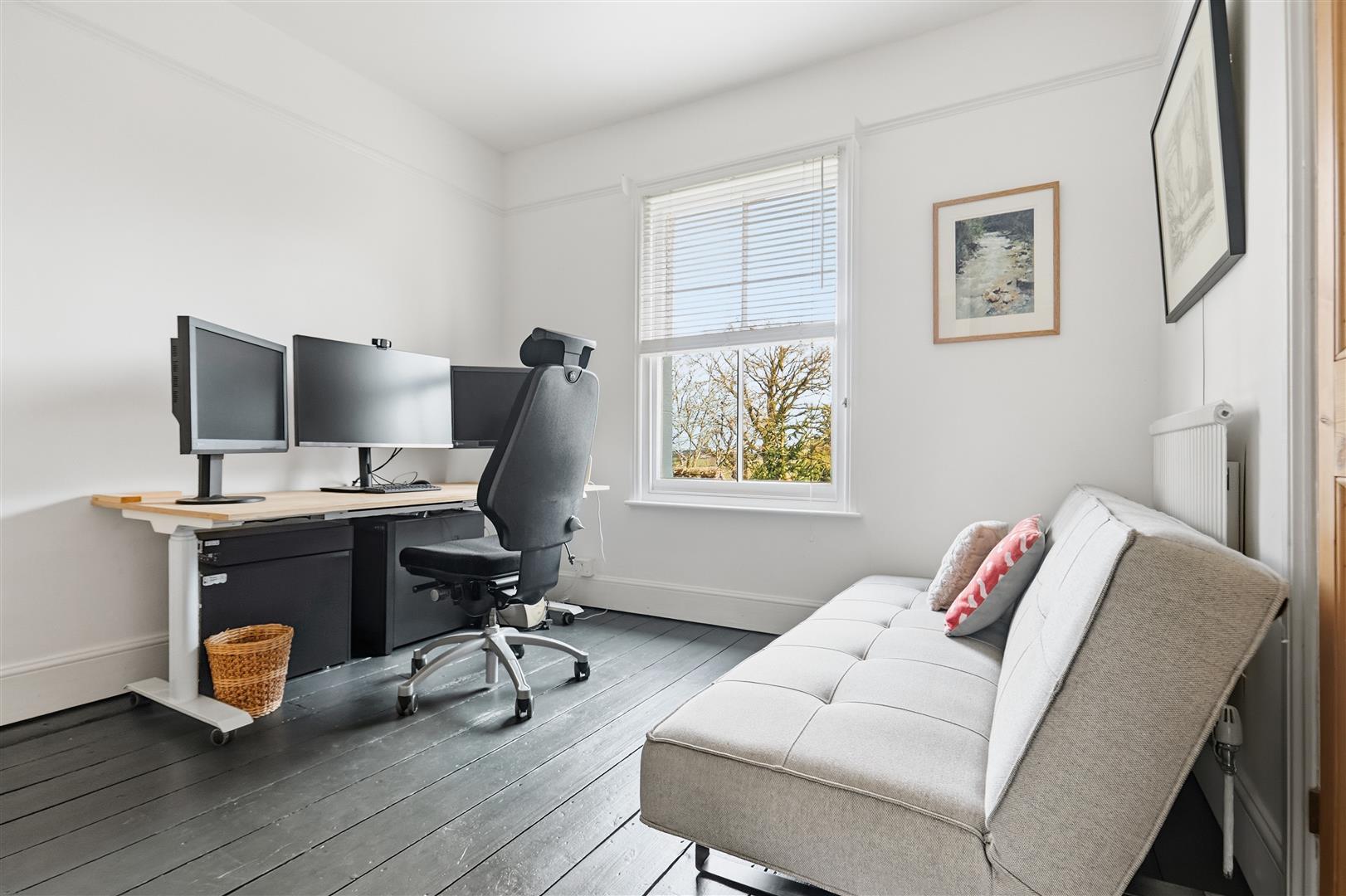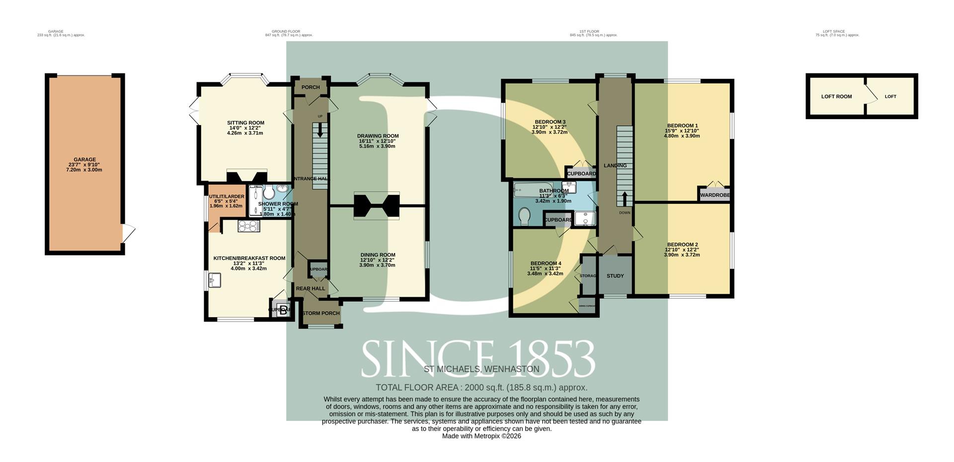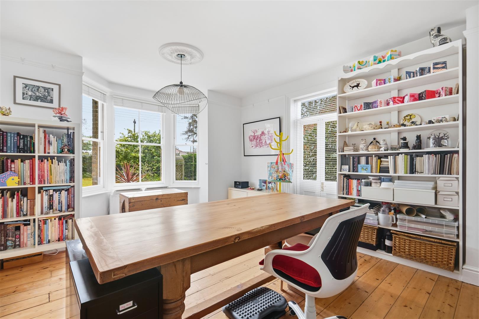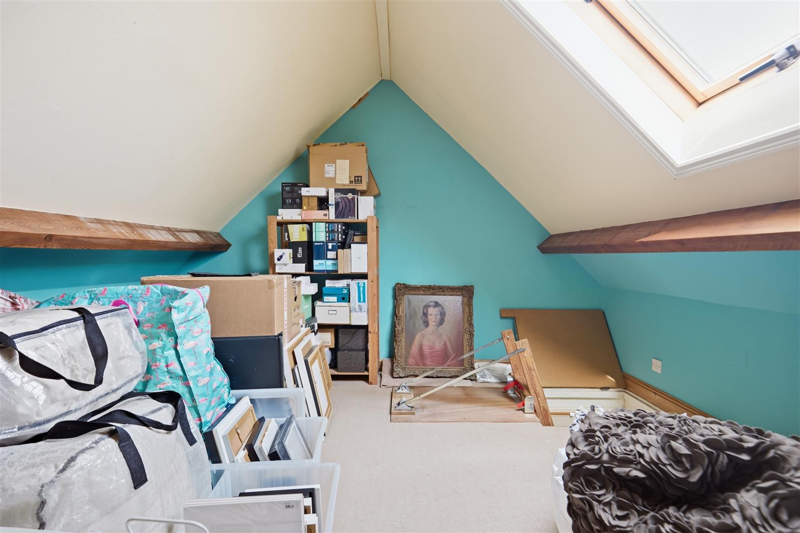 Upstairs, the first floor comprises four well-proportioned bedrooms, including a particularly spacious principal bedroom with built-in wardrobes. A spacious family bathroom serves the bedrooms. An additional room, ideal for a home office or dressing area, further enhances the accommodation. A loft room above provides useful additional space, suitable for a variety of uses.