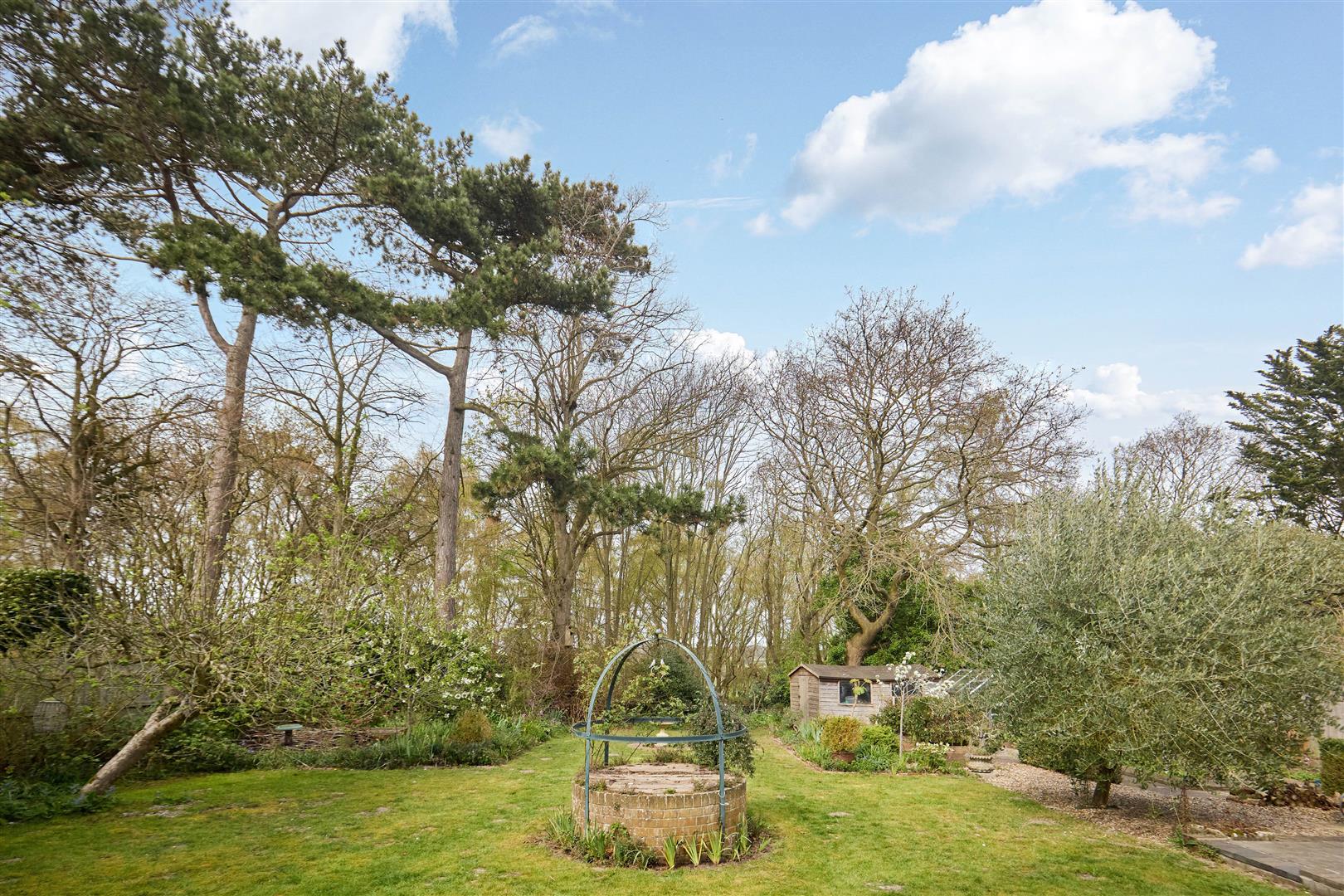 The approach to the home is truly striking, with a generous driveway providing off-road parking for several vehicles, complemented by well-tended front gardens and the rare feature of a working water well—adding both charm and a unique sense of heritage.