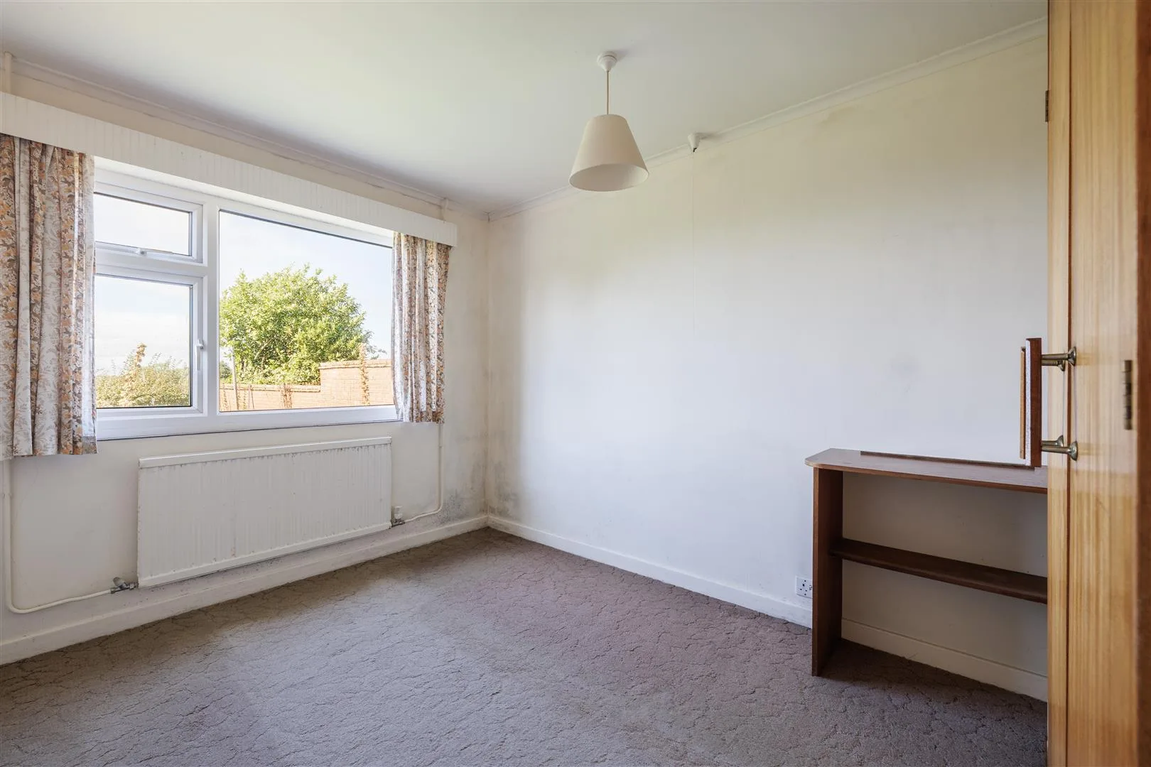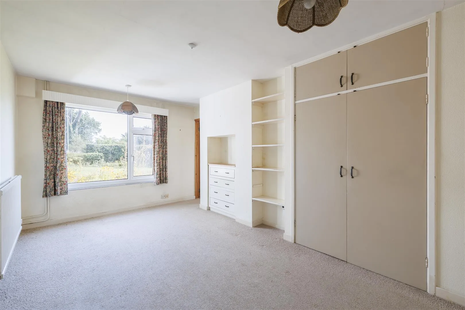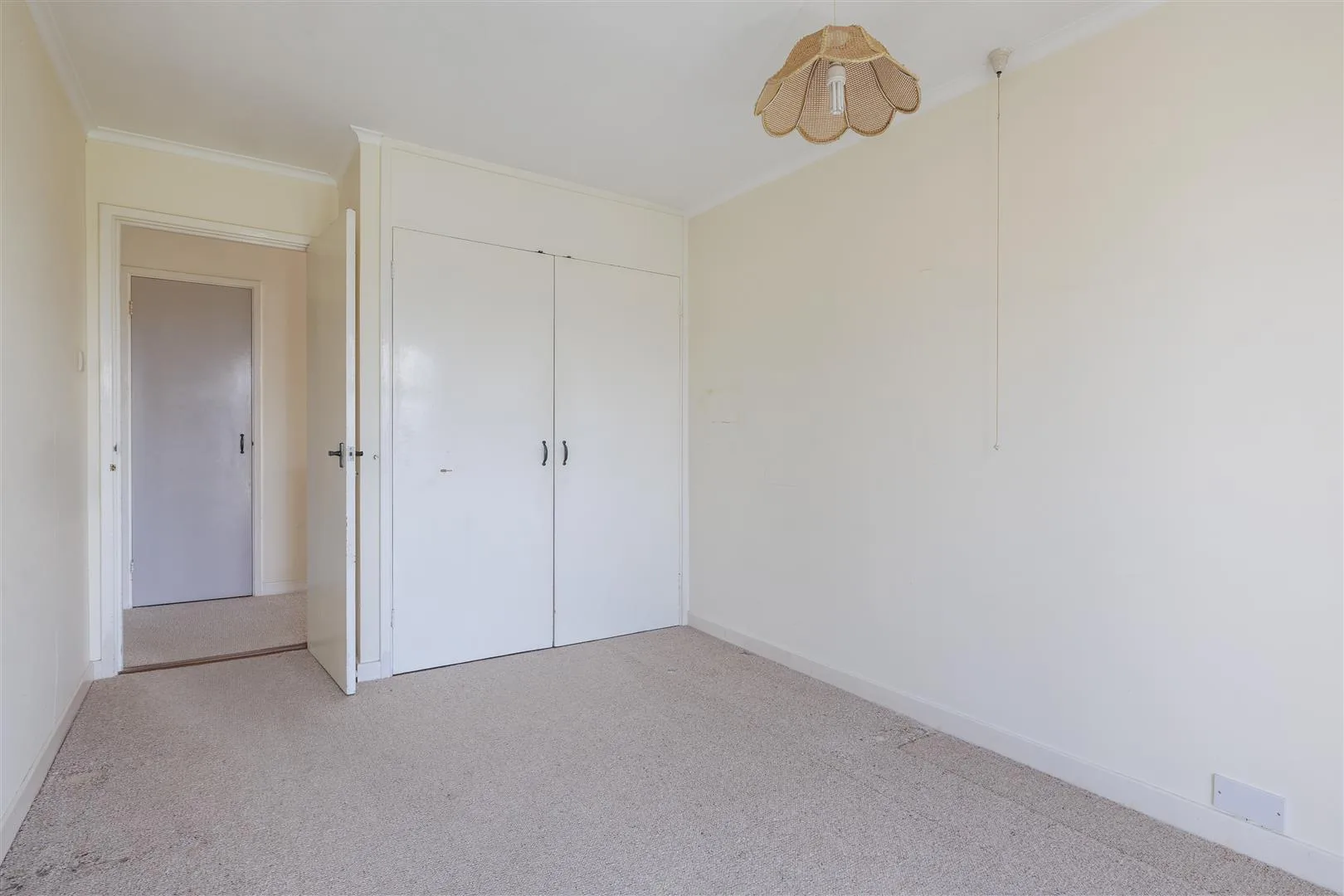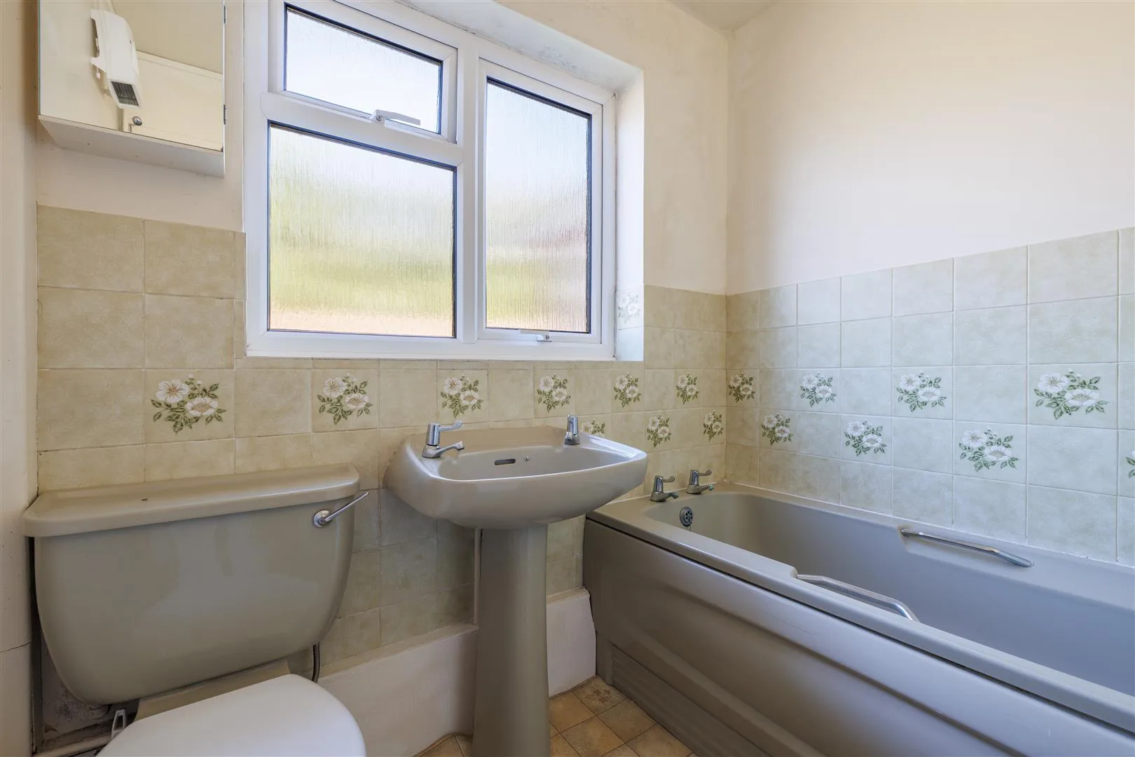 At the rear of the property, a hallway connects the bedrooms and also offers useful storage cupboards. The main bedroom is a good-sized double room with views over the side of the property and garden. The second bedroom is another comfortable double, this time overlooking the rear garden. The third bedroom is a smaller single room, which the current owners use as a garden room, as it has double doors opening directly outside, making it a bright and flexible space.