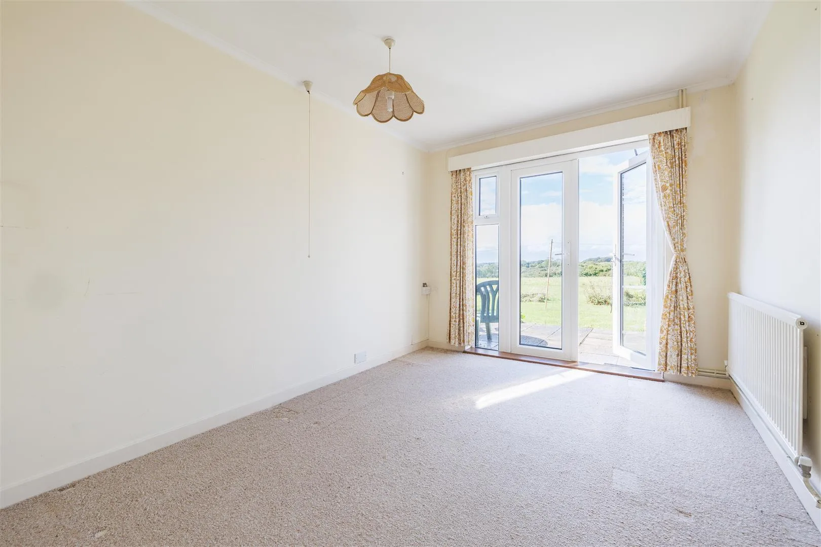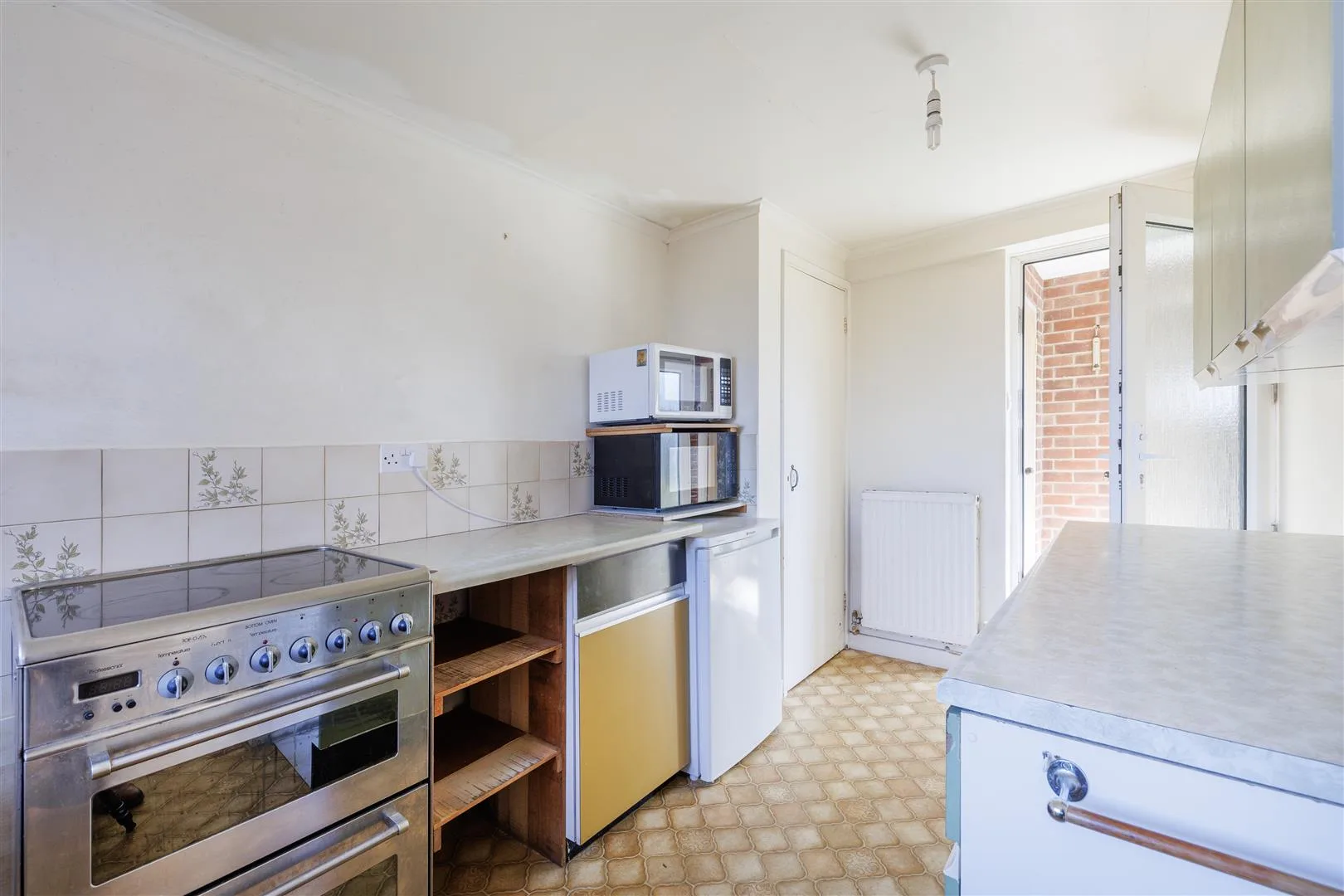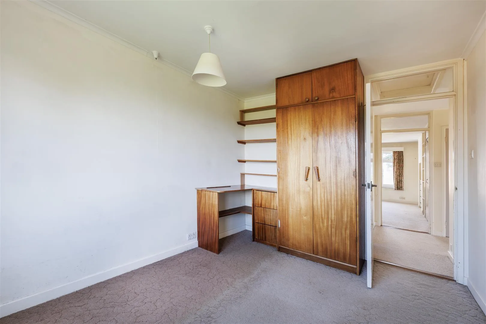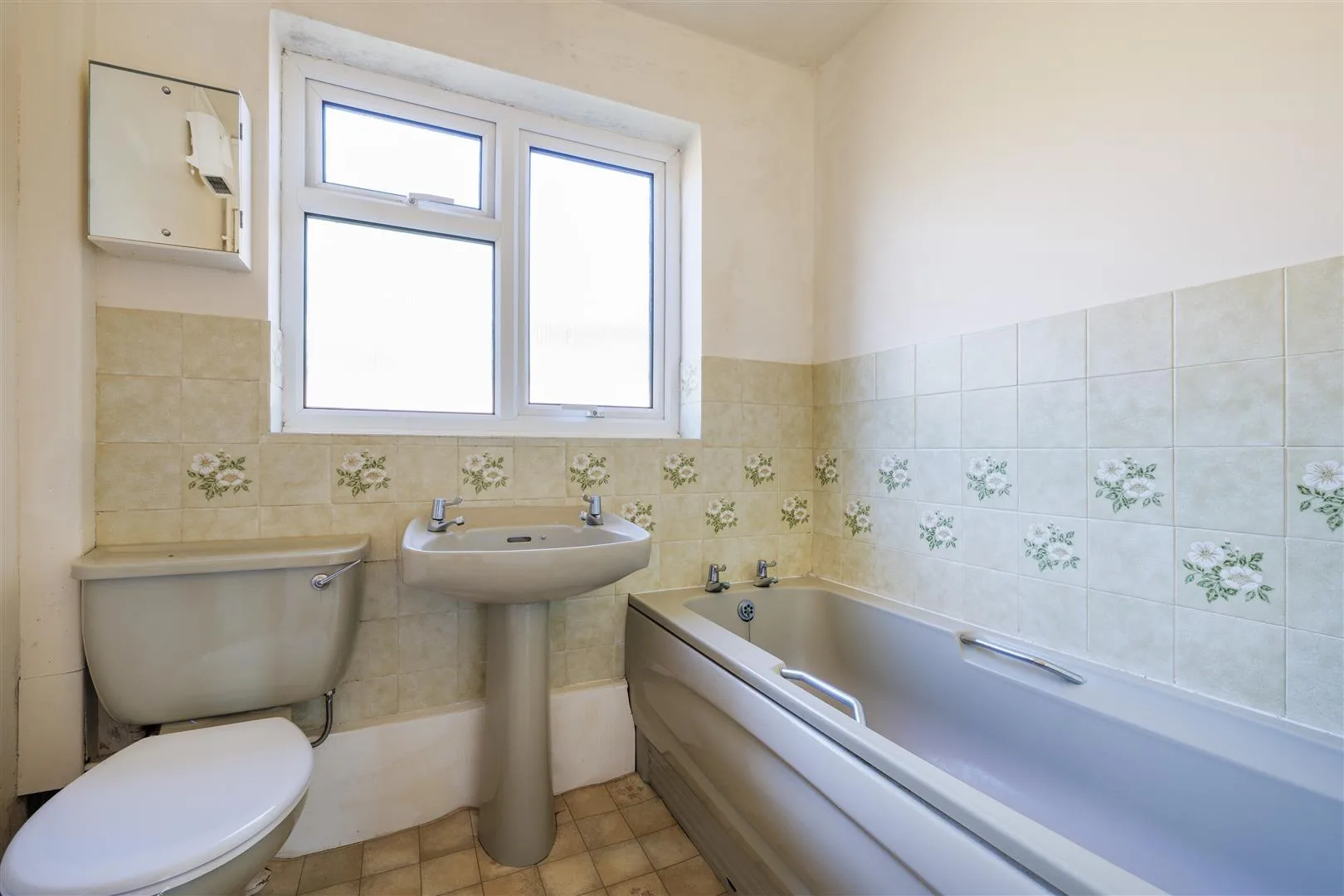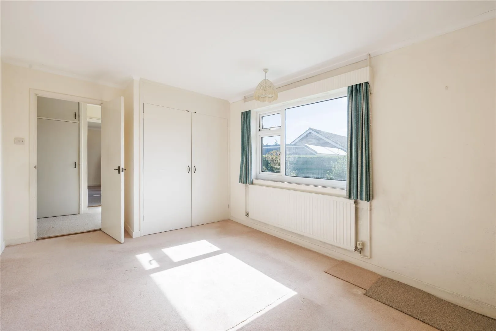 At the rear of the property, a hallway connects the bedrooms and also offers useful storage cupboards. The main bedroom is a good-sized double room with views over the side of the property and garden. The second bedroom is another comfortable double, this time overlooking the rear garden. The third bedroom is a smaller single room, which the current owners use as a garden room, as it has double doors opening directly outside, making it a bright and flexible space.