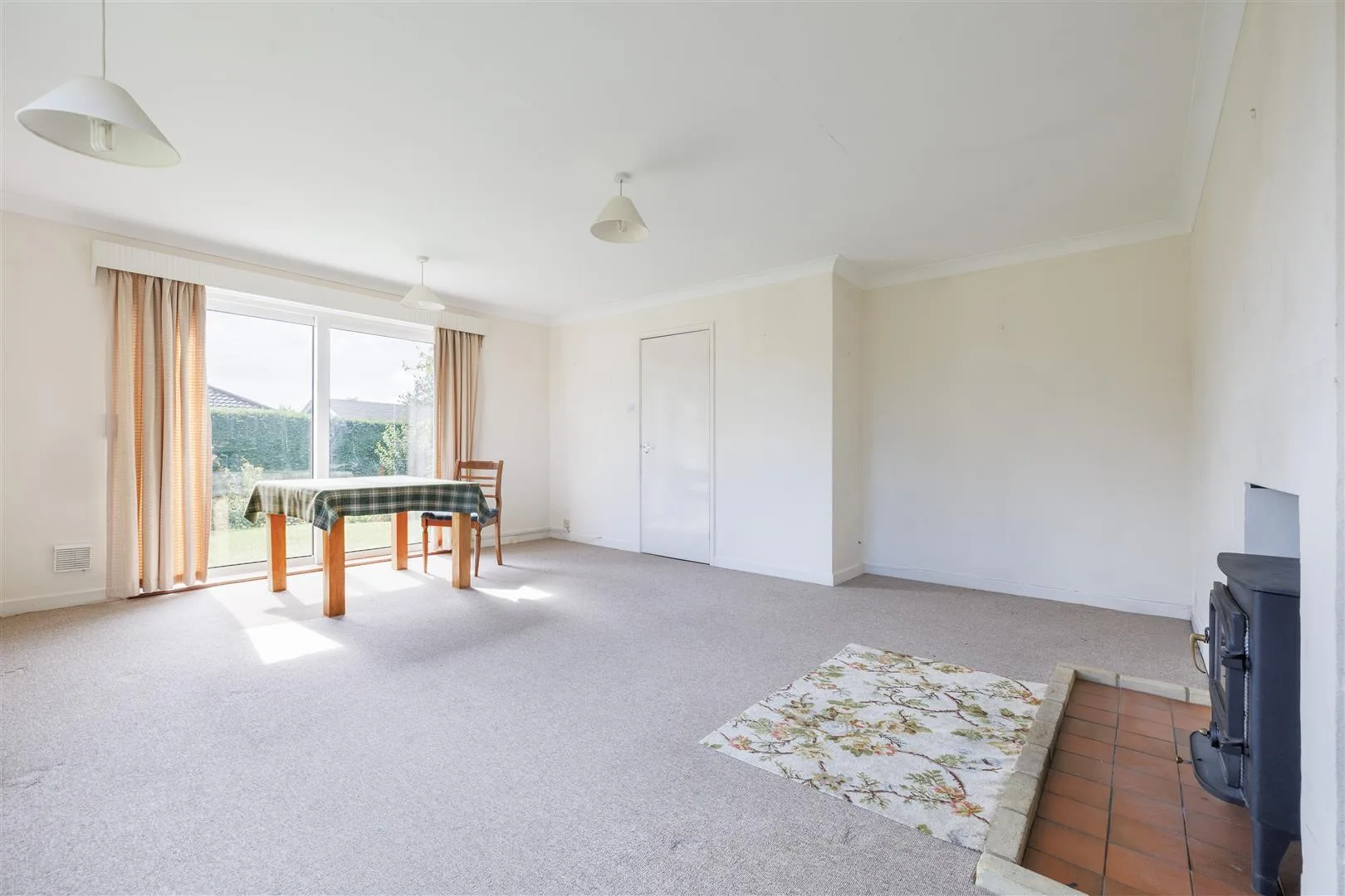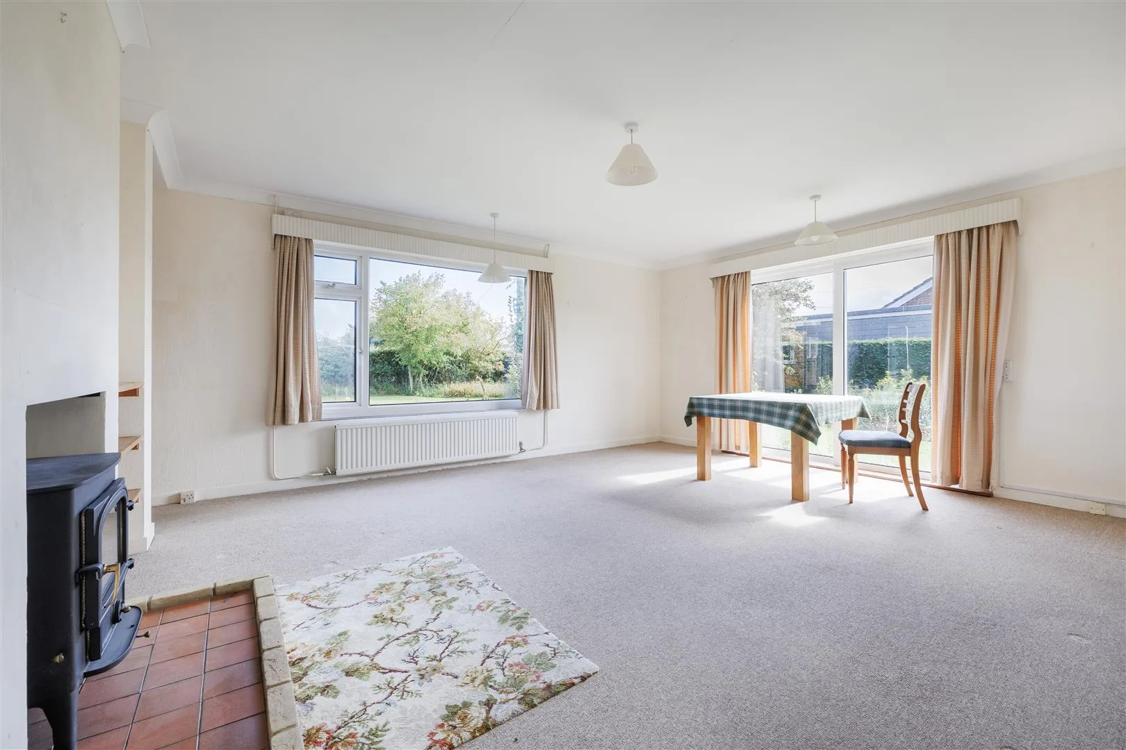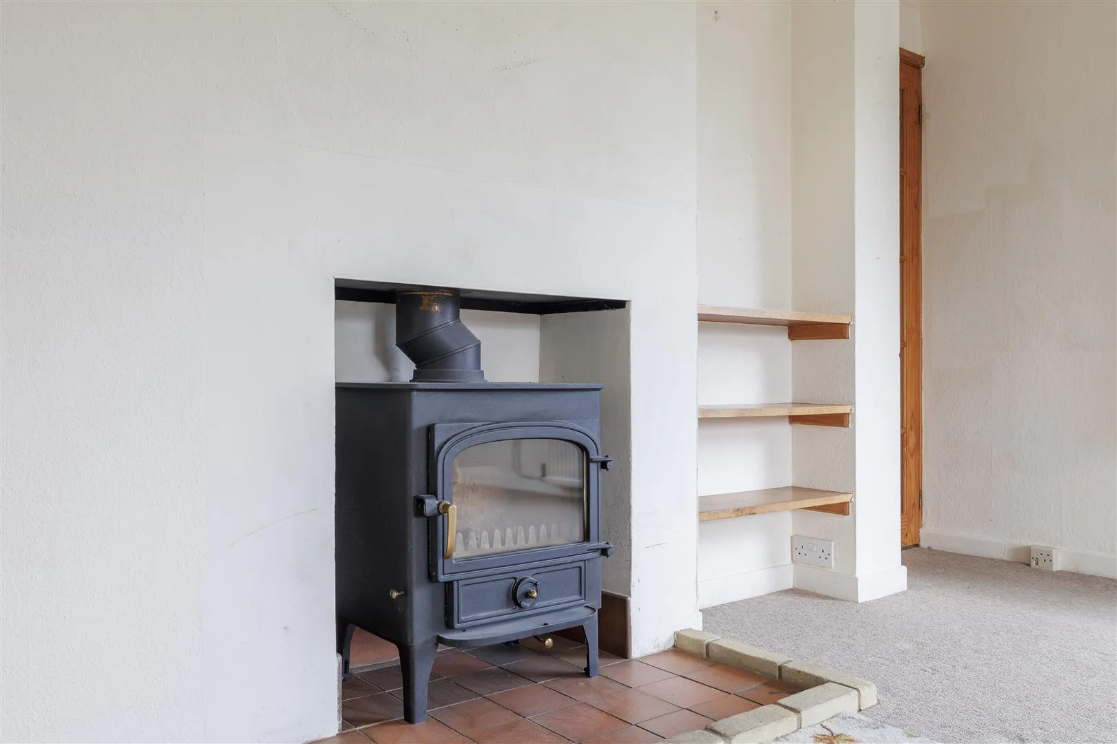 Off the kitchen is a versatile reception room, which could be used as a dining area, study, or hobby space, depending on your needs. From here, the home opens into the main sitting room. This is a well-proportioned space, with a wood burner providing a central feature. The room benefits from plenty of natural light thanks to dual aspect windows and doors that lead directly out to the garden.