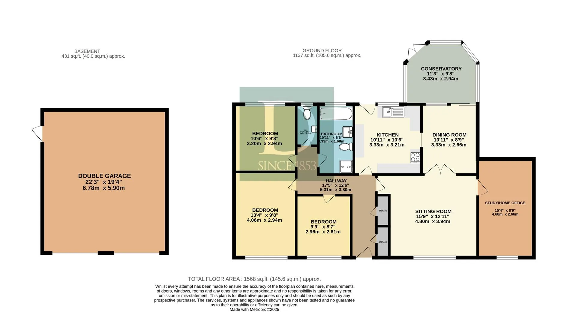 To the front of the home, a large sitting room benefits from a wide window flooding the space with natural light, while a second reception room provides flexibility as a study, hobby room, or an excellent home office.