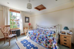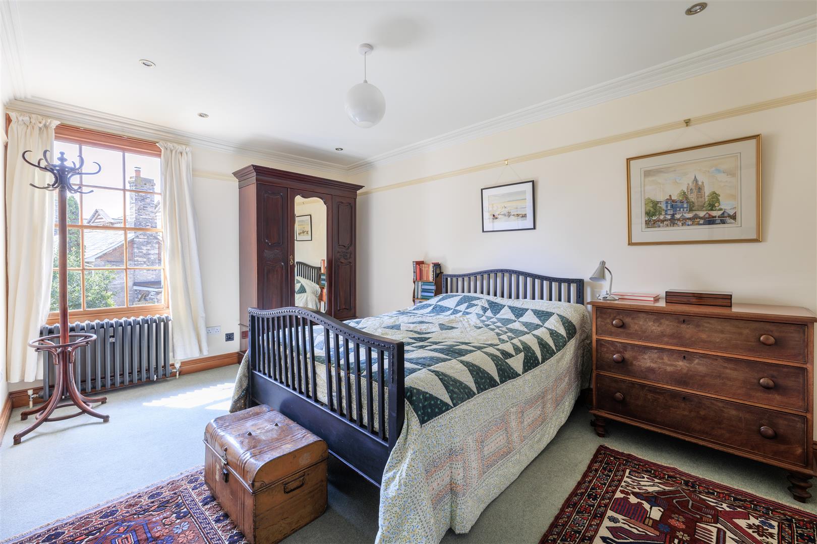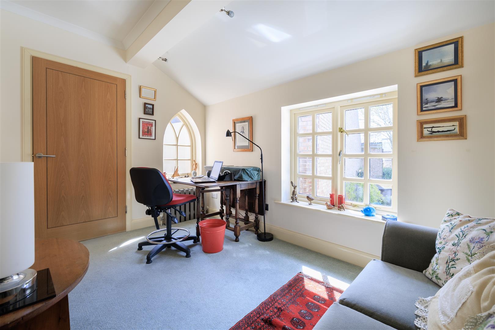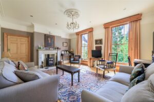 To the rear, the elegant sitting room, located in the original part of the house, boasts delightful proportions, large sash windows, and a beautiful fireplace with a wood-burning stove, creating a perfect space for entertaining or relaxing.