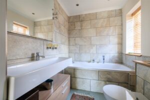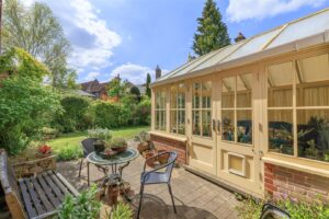 Outside, the south-facing garden is both pretty and practical — mature and thoughtfully landscaped, ideal for outdoor living.