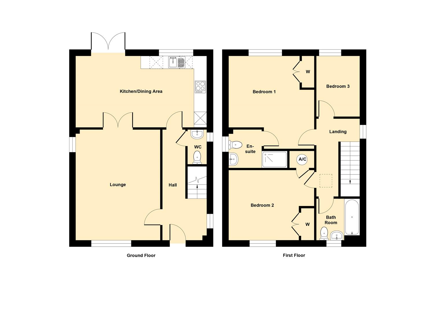 The Sycamore, a three-bedroom detached home. Internally, this home features a good size living room with double doors leading to the open-plan kitchen/dining area. From here, French doors open out to the rear garden. Upstairs, bedroom one includes an en-suite and double wardrobe. A good-sized family bathroom. There is a landscaped front garden with gated access to the rear garden that is fully enclosed and finished with topsoil, an outside tap and paved patio area. The home also offers a single garage, plus off-road parking for two cars.