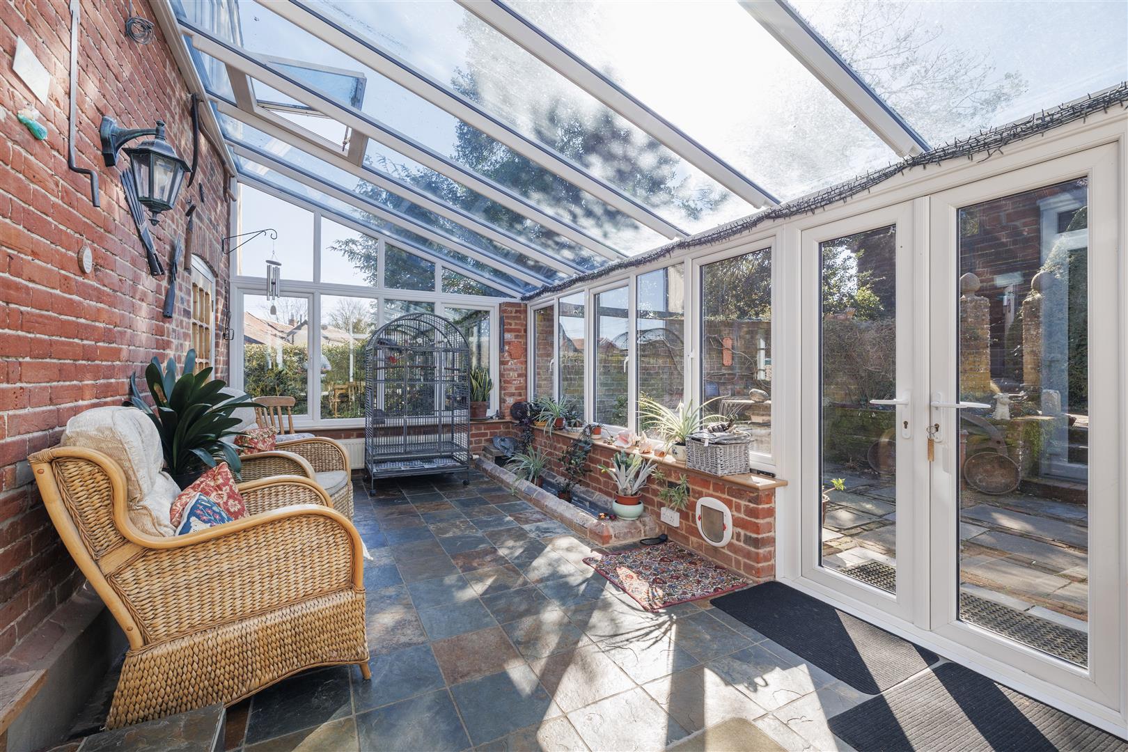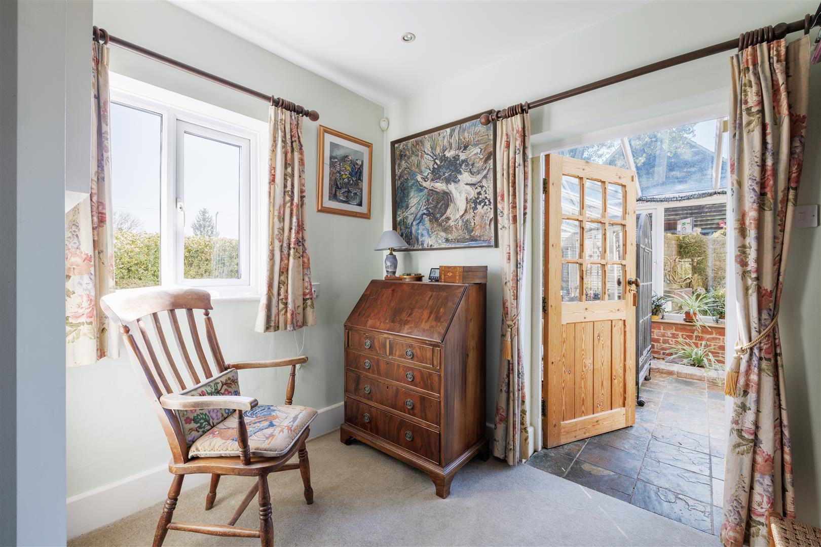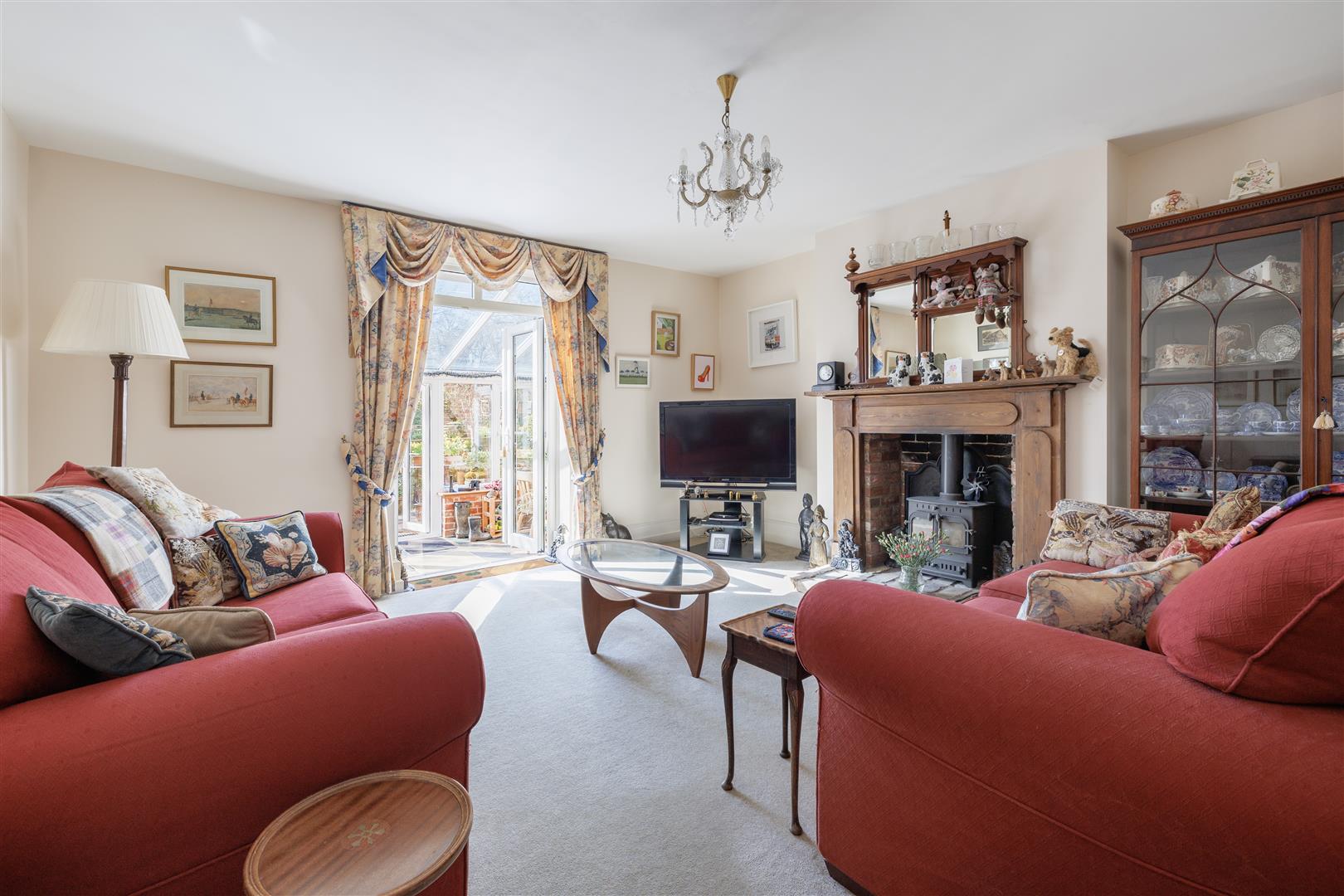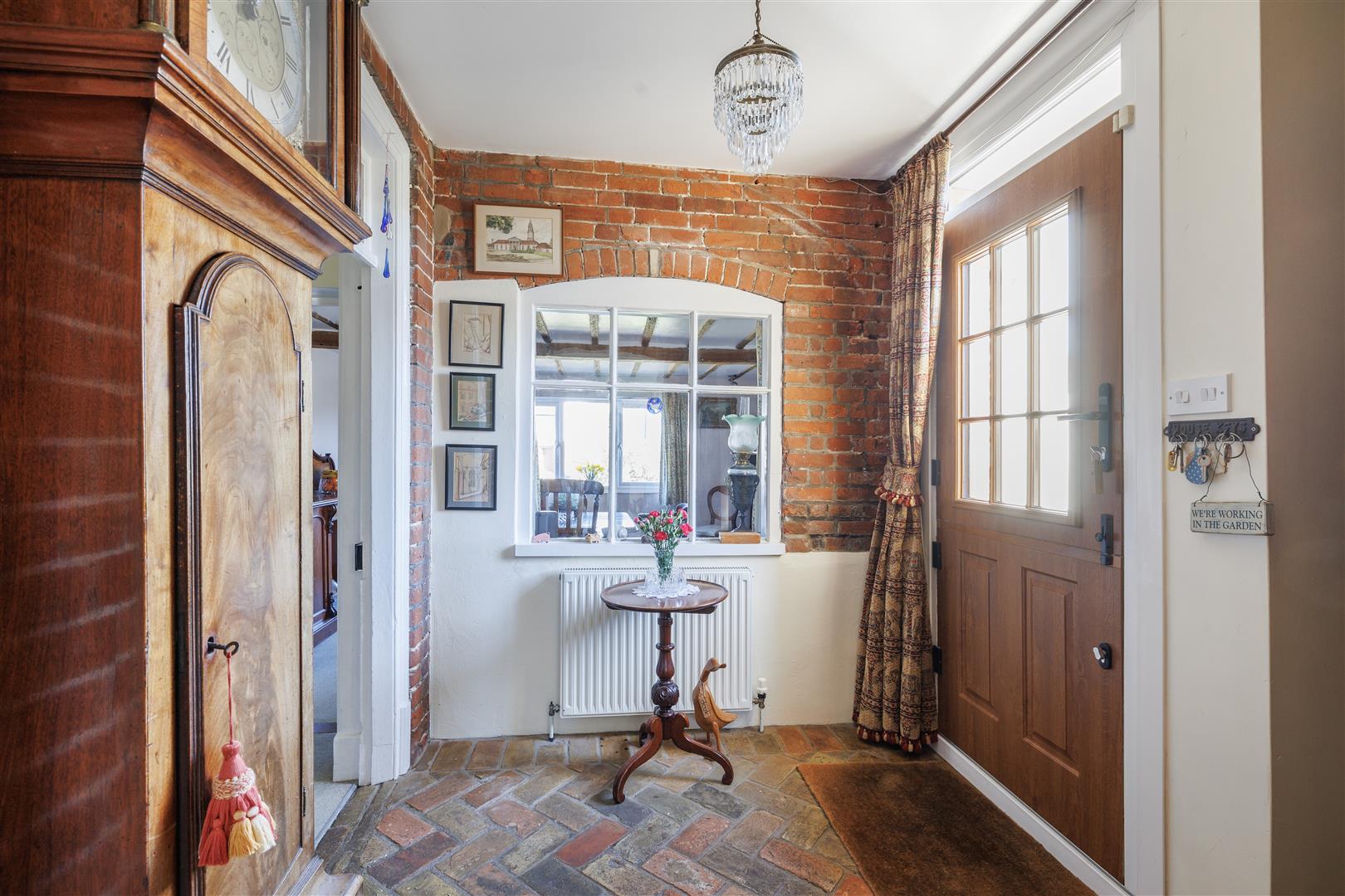 Approaching the property by a bridge over the brook, you are welcomed into a generously sized entrance hall, creating an immediate sense of space and leading to the main hallway giving access to the principal ground floor reception rooms. Positioned to the front of the home, the kitchen enjoys charming views over the front garden and nearby stream. It is well-appointed with a range of wall and base units, complemented by an oil-fired AGA, offering both practicality and character. Adjacent to the kitchen is the dining room, a spacious and inviting area filled with natural light from a large front-facing window ideal for both family and entertaining. From the hall two steps lead to the sitting room which is a particularly attractive space with a working wood burner that forms a cosy focal point with double doors opening seamlessly into the conservatory, enhancing the flow of the ground floor accommodation. The conservatory is a delightful addition, enjoying a south-facing aspect with views across the garden, flooded with natural light, this versatile space can be comfortably used throughout the year as it has two radiators. The conservatory also has a fitted water feature situated in the corner this makes the space feel so relaxing and great for unwinding. From here, a separate door leads into the library, a charming room with views over the side aspect and driveway, complete with fitted bookshelves perfect for relaxing or working from home. From the main hallway, steps lead down to a useful cellar, currently utilised as a utility area. This dry and practical space is ideal for storage and also houses the boiler and hot water tank. Completing the ground floor accommodation is a convenient downstairs cloakroom.