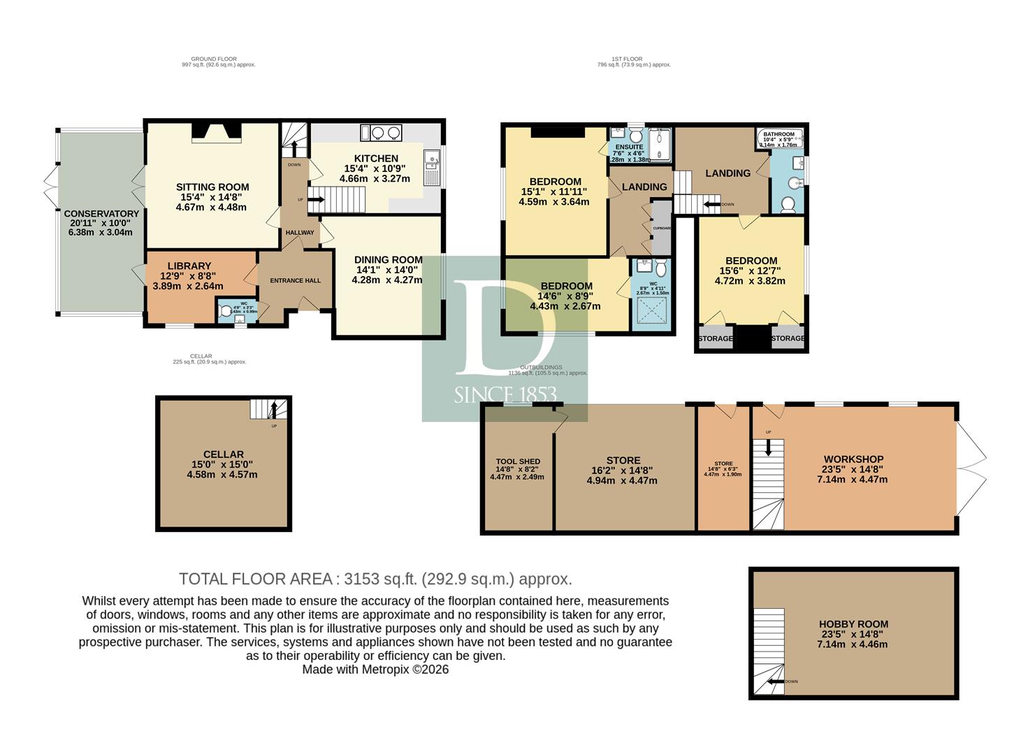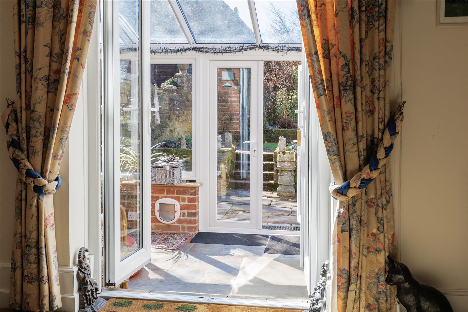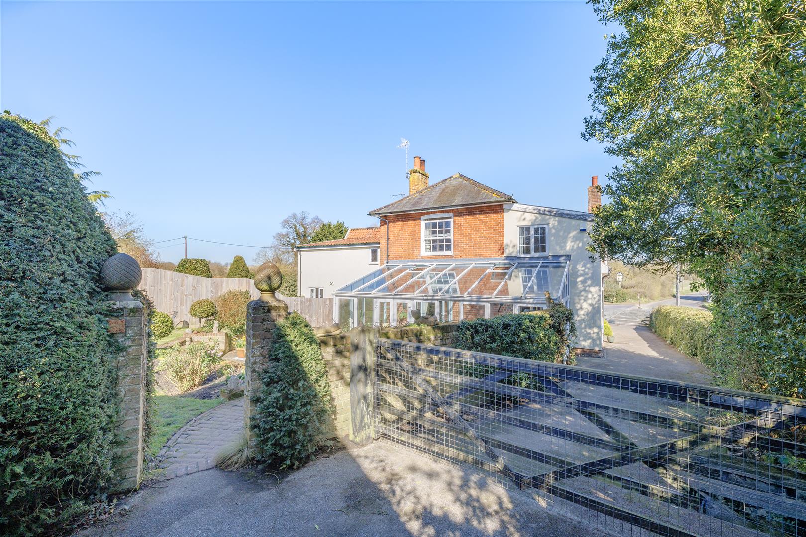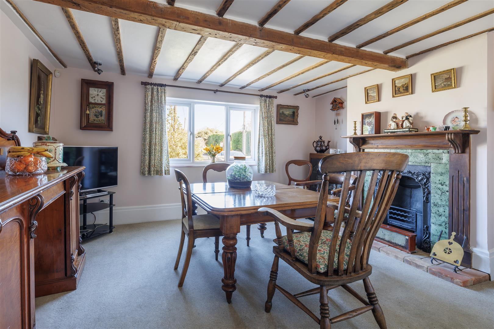 Approaching the property by a bridge over the brook, you are welcomed into a generously sized entrance hall, creating an immediate sense of space and leading to the main hallway giving access to the principal ground floor reception rooms. Positioned to the front of the home, the kitchen enjoys charming views over the front garden and nearby stream. It is well-appointed with a range of wall and base units, complemented by an oil-fired AGA, offering both practicality and character. Adjacent to the kitchen is the dining room, a spacious and inviting area filled with natural light from a large front-facing window ideal for both family and entertaining. From the hall two steps lead to the sitting room which is a particularly attractive space with a working wood burner that forms a cosy focal point with double doors opening seamlessly into the conservatory, enhancing the flow of the ground floor accommodation. The conservatory is a delightful addition, enjoying a south-facing aspect with views across the garden, flooded with natural light, this versatile space can be comfortably used throughout the year as it has two radiators. The conservatory also has a fitted water feature situated in the corner this makes the space feel so relaxing and great for unwinding. From here, a separate door leads into the library, a charming room with views over the side aspect and driveway, complete with fitted bookshelves perfect for relaxing or working from home. From the main hallway, steps lead down to a useful cellar, currently utilised as a utility area. This dry and practical space is ideal for storage and also houses the boiler and hot water tank. Completing the ground floor accommodation is a convenient downstairs cloakroom.
