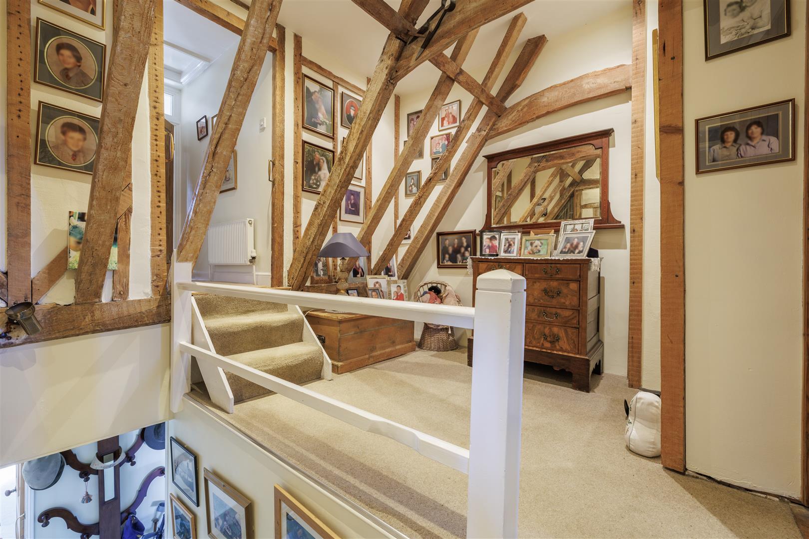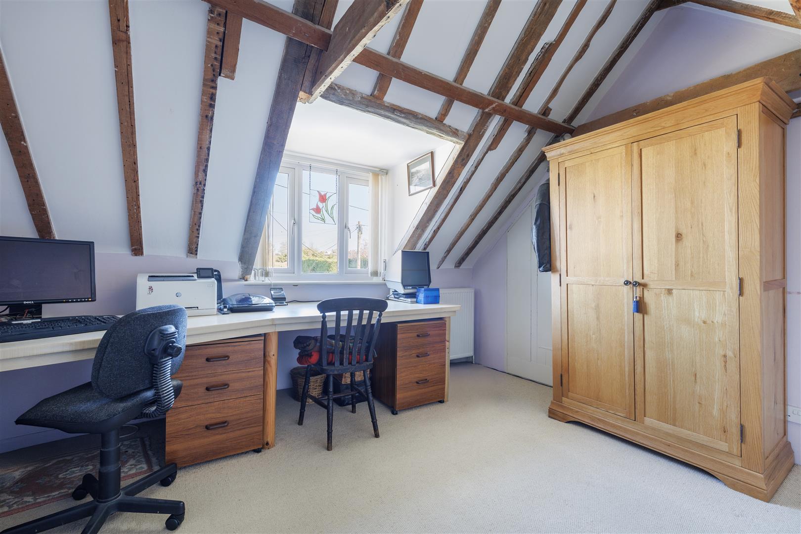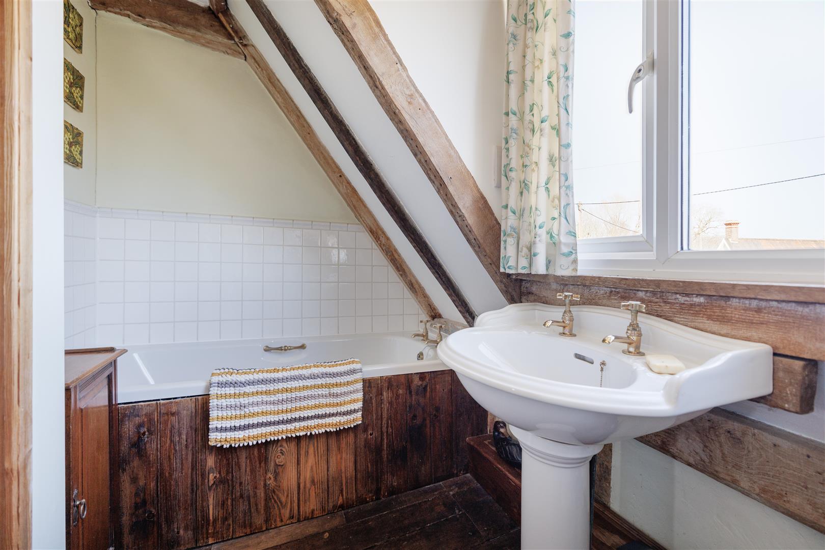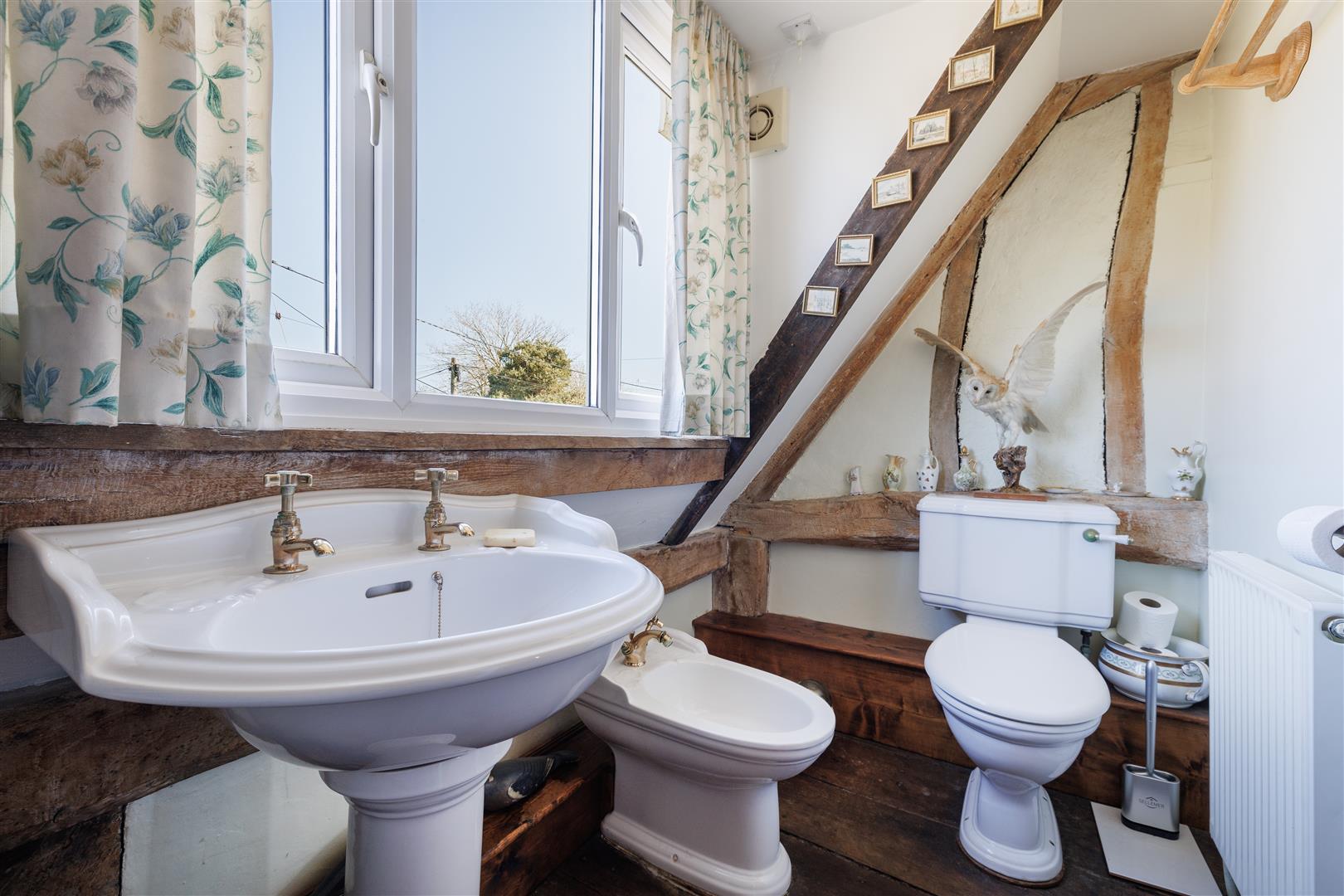 Upstairs, the large first landing continues to impress with original timbers, plaster work and an exposed section of the original wall. There are three well-proportioned double bedrooms, each enjoying pleasant views from every window. Bedroom one is a spacious room benefiting from an abundance of natural light and lovely views over the rear garden and surrounding fields. This room is further enhanced by a private en-suite, fitted with a walk-in shower, WC and wash basin. Bedroom two is another generous double room, featuring dual-aspect windows that create a light and airy feel. This room also benefits from access to a separate WC, complete with toilet and wash basin. Bedroom three is a comfortable double bedroom with useful eaves storage and attractive views over the front garden. The first floor is completed by a well-appointed family bathroom, fitted with a bath, WC, bidet and wash basin.