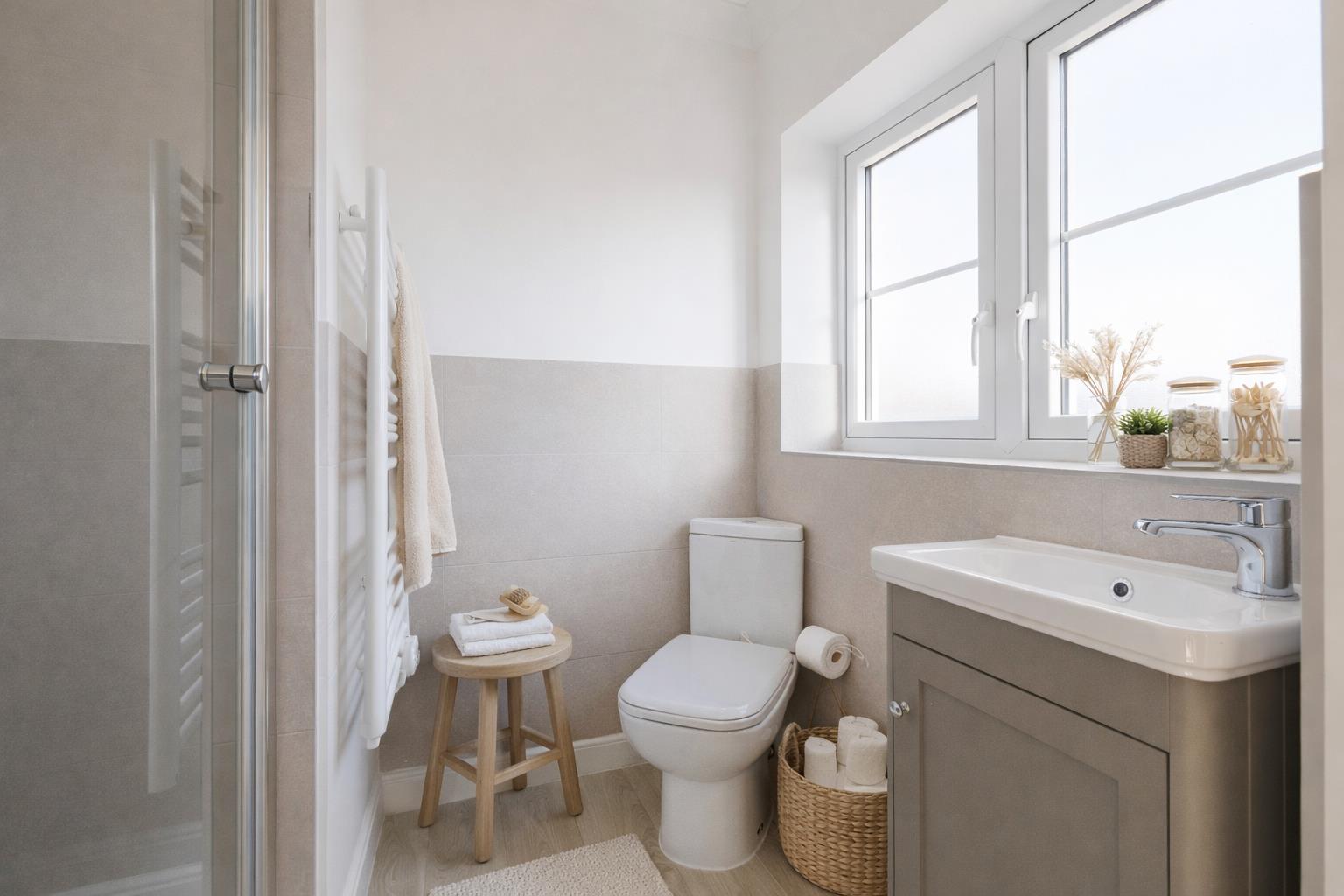 To the first floor, the landing provides access to three well-proportioned bedrooms and a stylish modern family bathroom. The principal bedroom further benefits from its own en-suite shower room, adding to the comfort and practicality of the home.