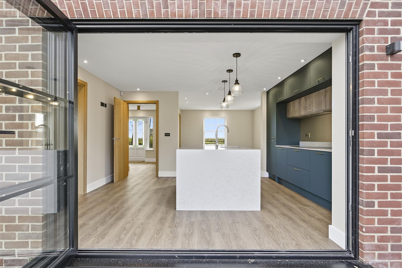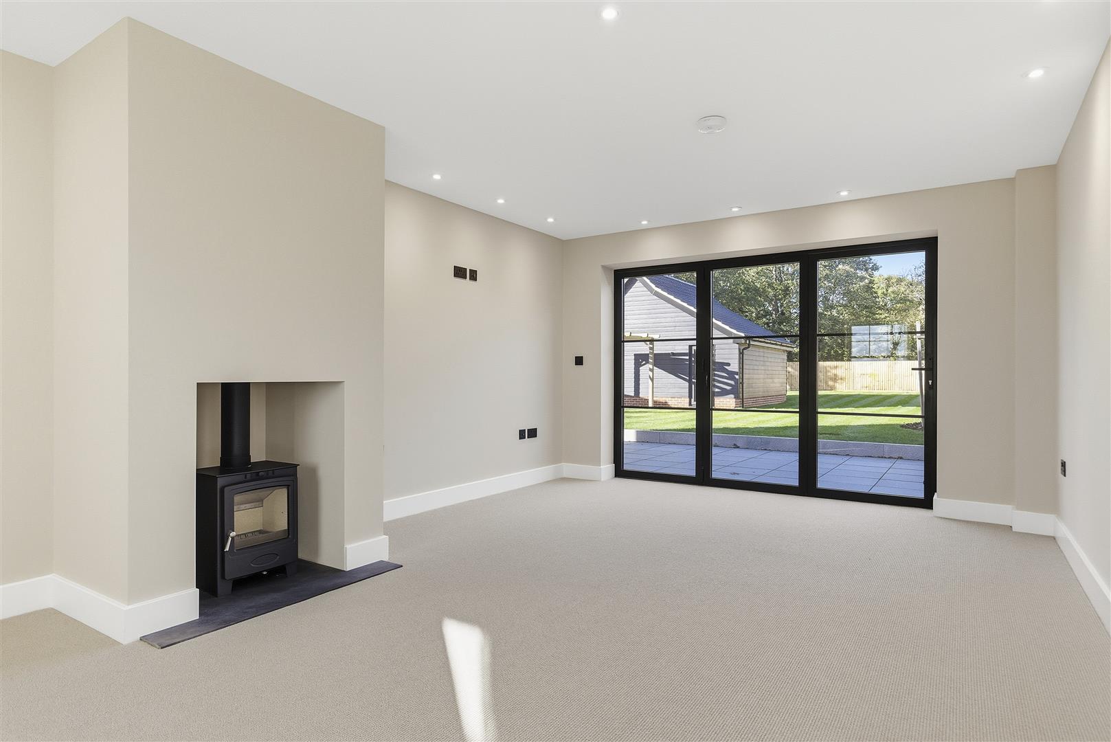 The house is afforded excellent levels of parking with two gravel driveways. The front door opens to an impressive part double height entrance hall with galleried landing above and feature oak staircase. To one side is an excellent double aspect sitting room with open fireplace and woodburning stove and elegant Crittall style bi-folding doors to the garden. The kitchen/dining/family room forms the opposite side of the ground floor and is open plan with the family area to the front. The kitchen is fitted with an attractive range of contemporary wall and base units with Quartz work surfaces and a range of integrated NEFF appliances. There is a substantial island with feature sink and tap. Again, there are Crittal style bi-folding doors opening to the garden. There is the added benefit of a separate utility room with access to the rear and also a door to the ground floor cloakroom. On the first floor there is a superb galleried landing with central window to the front benefitting from field views. The principal bedroom is also to the front enjoying the views and has a superbly appointed ensuite shower room. There are three further double bedrooms and a luxury family bathroom.