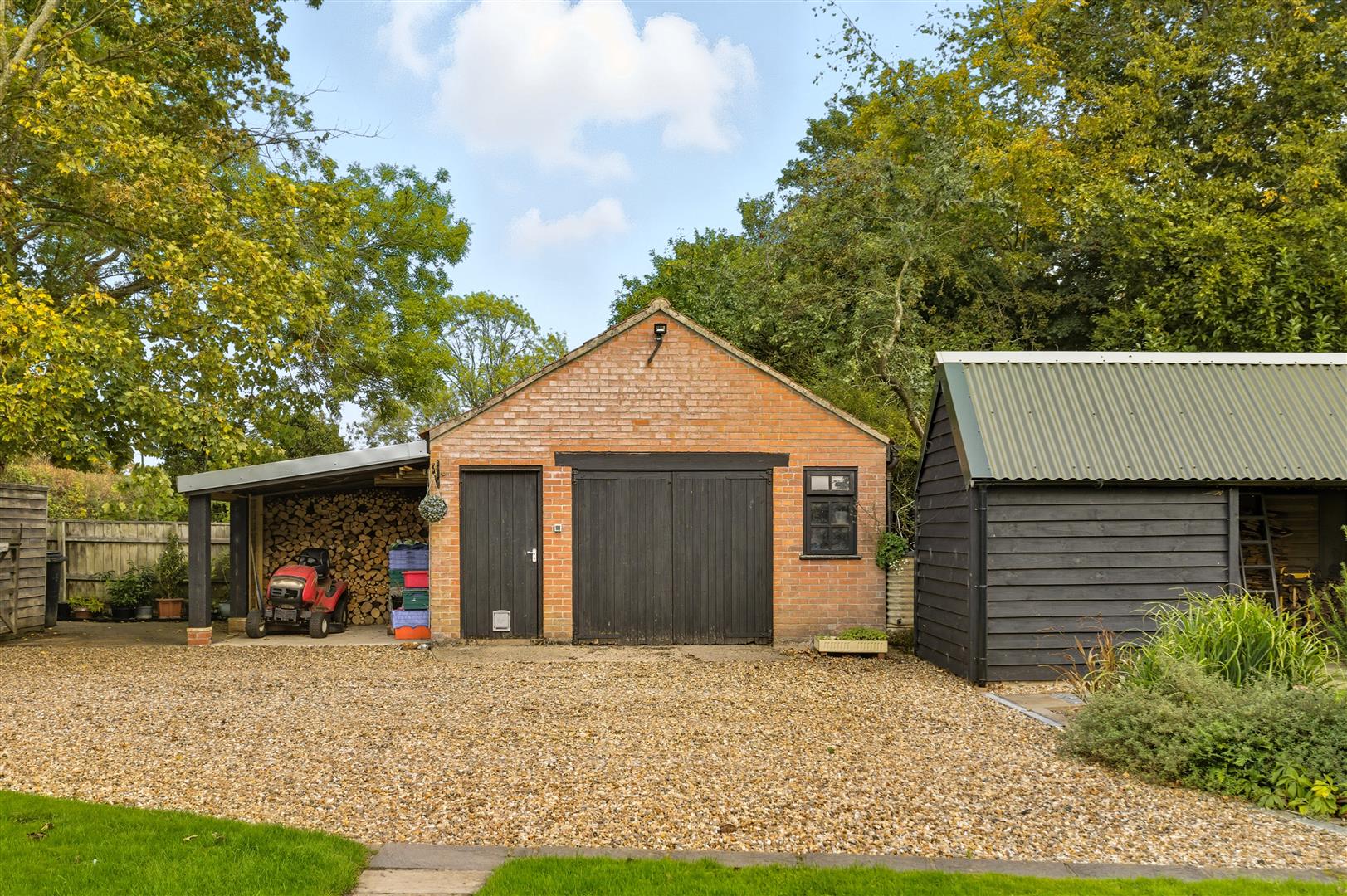 The property is approached from the road via a gravel driveway providing parking for several cars leading to the detached garage with adjacent woodstore. The gardens are a delightful feature of the property and include an array of established trees and shrubs, a pond and a summer house. There is a delightful paved patio for alfresco dining. Beyond the garden is a menage and paddock making it perfect for those with a pony and there is a stable building with two loose boxes.