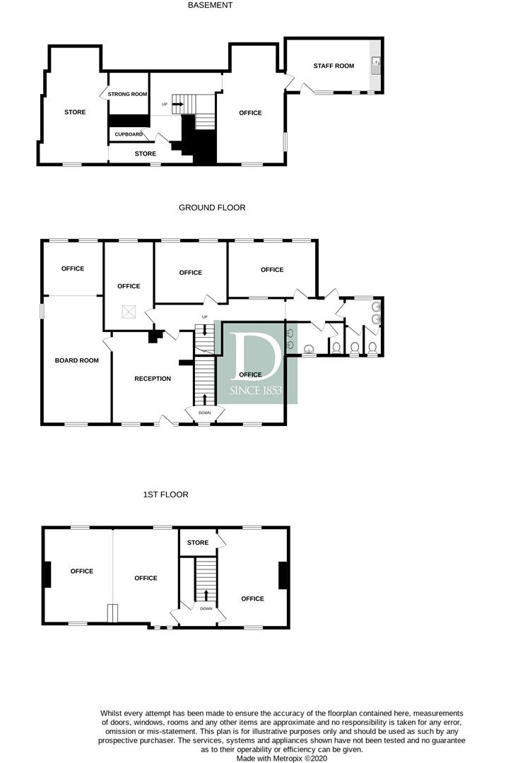 A substantial office premises extending to circa 300sq.m with accommodation over three floors and extensive parking provision.