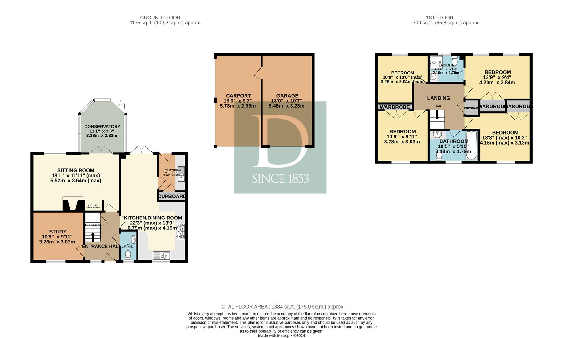 On the first floor, the landing leads to four well-proportioned bedrooms, with the master bedroom benefiting from ensuite facilities. A family bathroom serves the other three bedrooms.