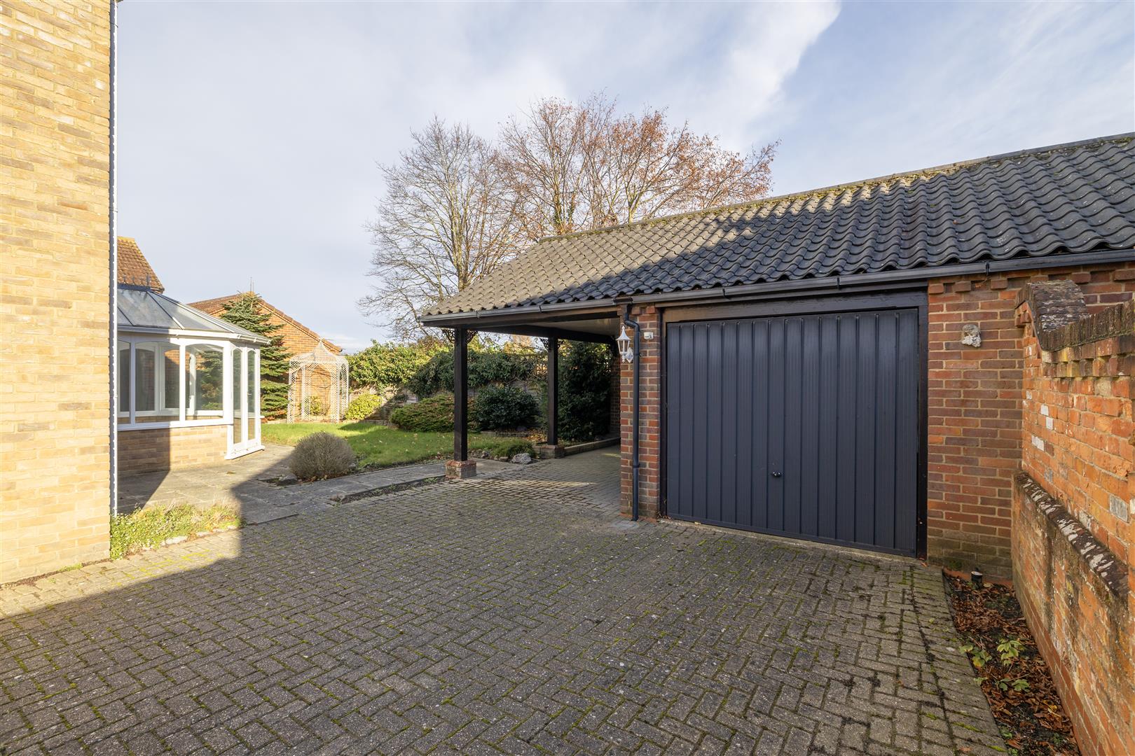 Externally, the property is set in a well-regarded cul-de-sac and boasts a gated driveway that leads to both a garage and a carport, offering ample parking space. The rear garden is laid to lawn and interspersed with mature shrubs and plants, providing a lovely outdoor space to enjoy. The front garden is well-stocked with a variety of plants, adding to the property's curb appeal.